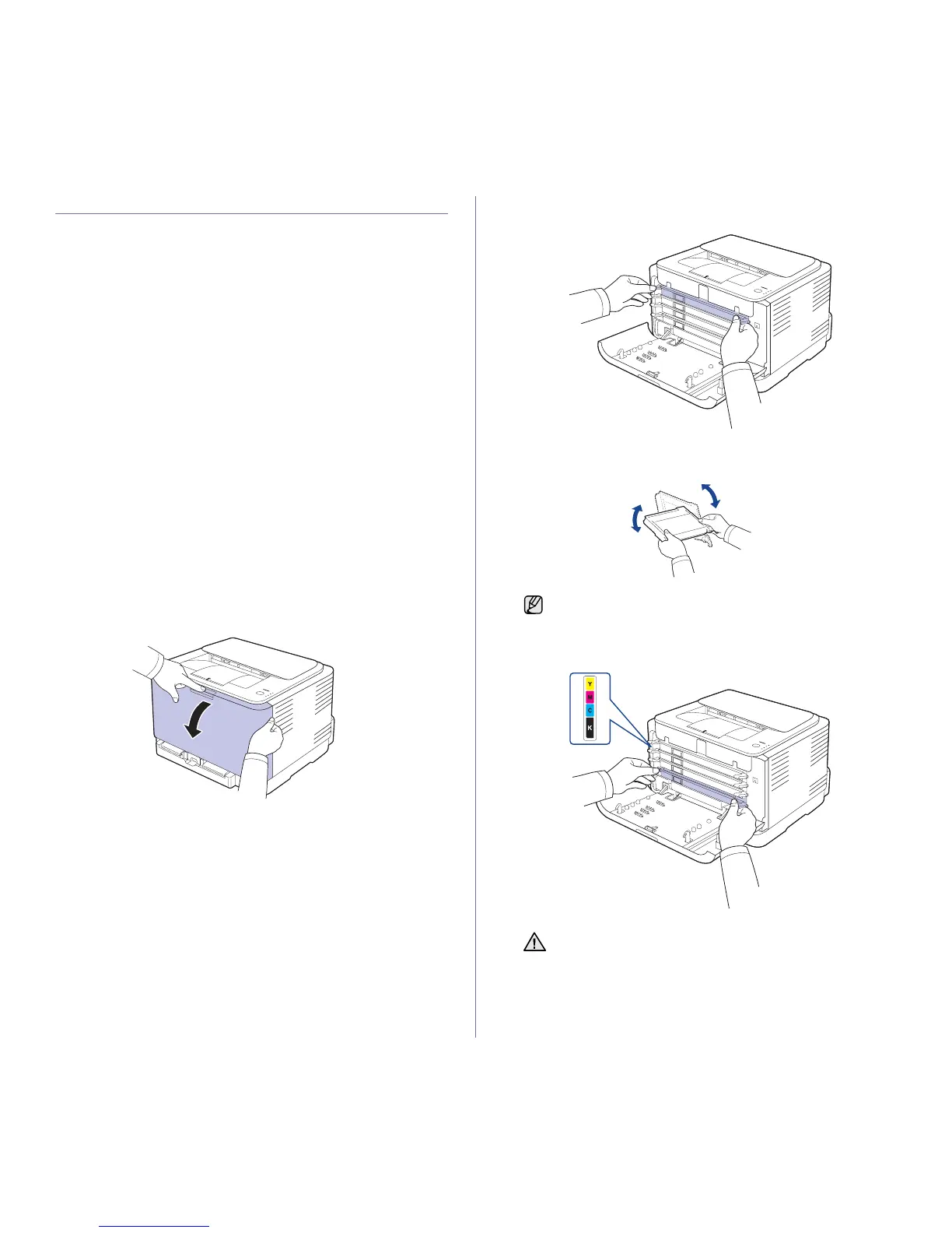 2. Grasp the handles on the toner cartridge and pull to remove the