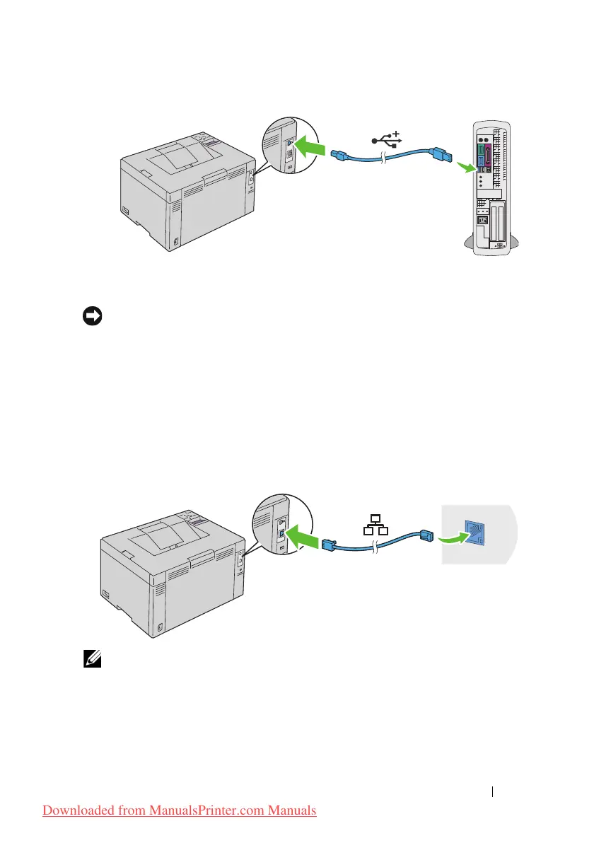NOTICE: Do not connect the printer USB cable to the USB port available on the