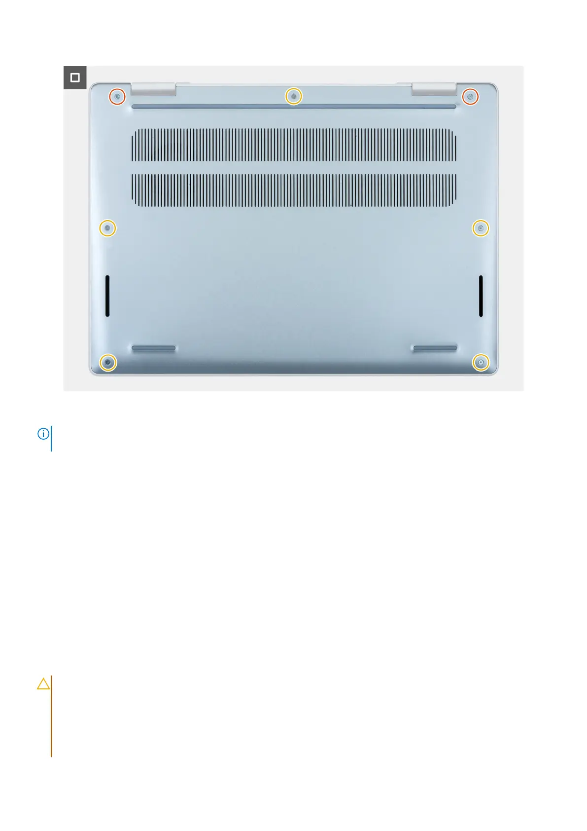 5. Replace the five screws (M2x4) that secure the base cover to the palm-rest and keyboard assembly.