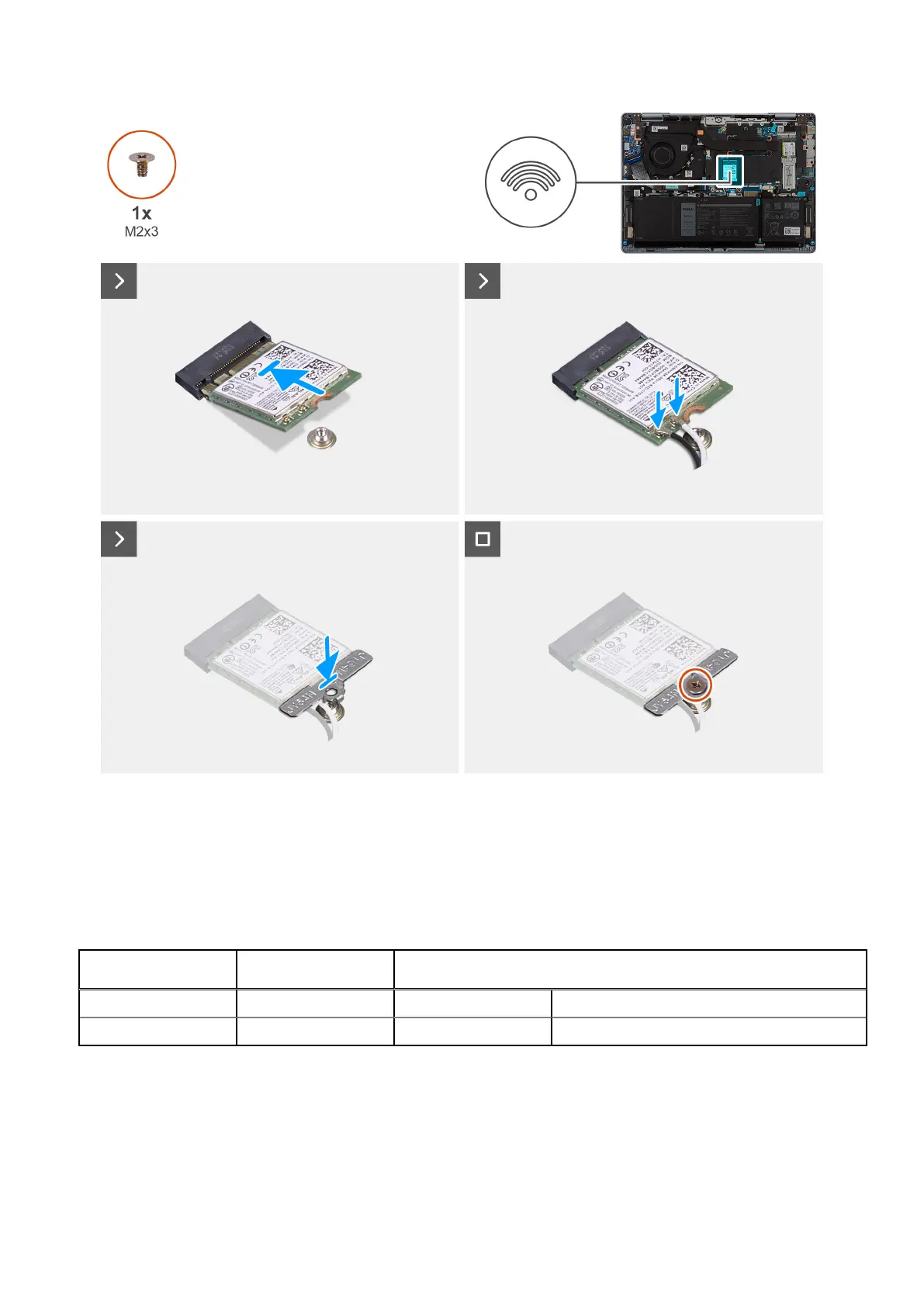 6. Replace the screw (M2x3) that secures the wireless-card bracket to the system board.