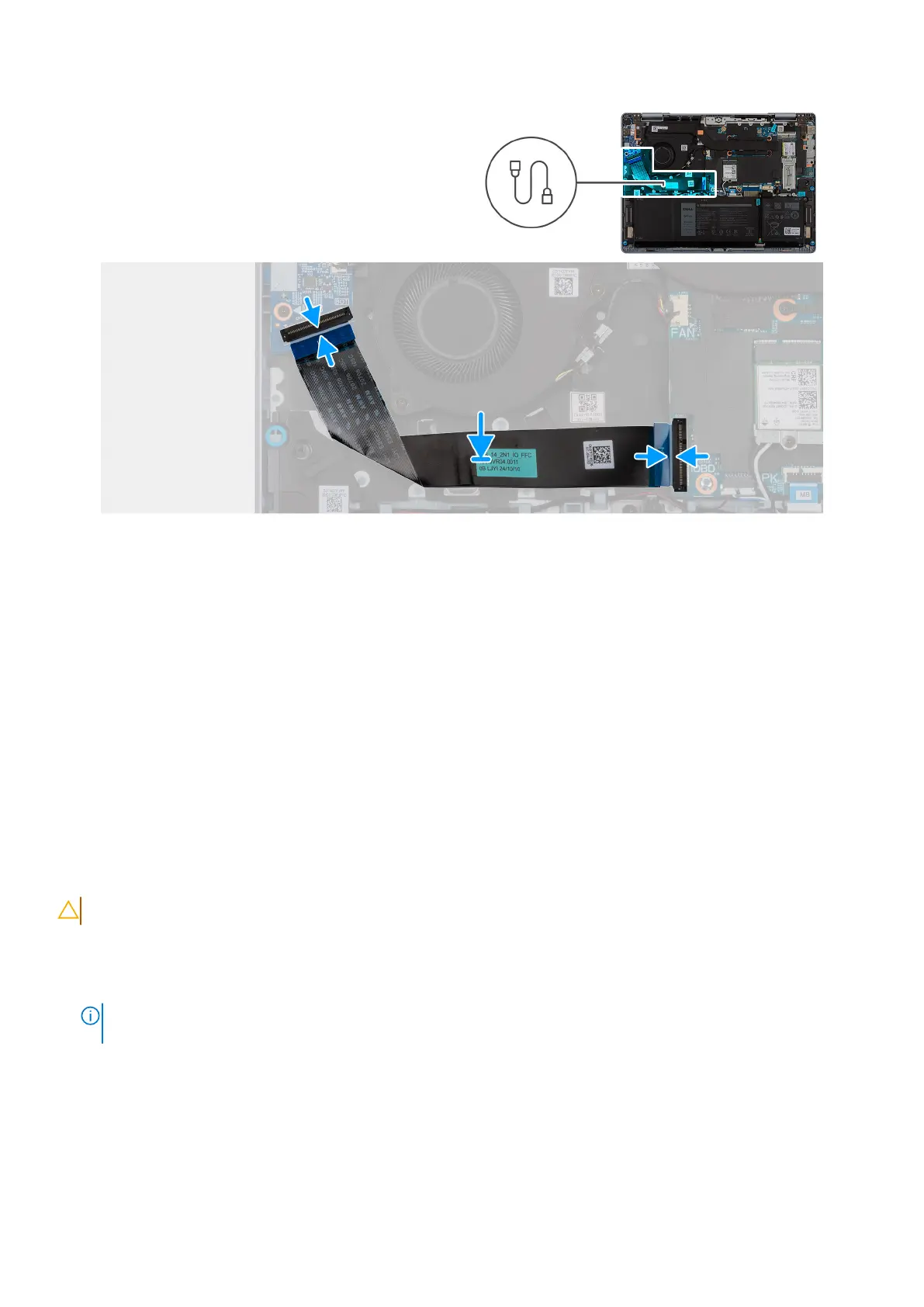 1. Place the I/O-board cable on the palm-rest and keyboard assembly.