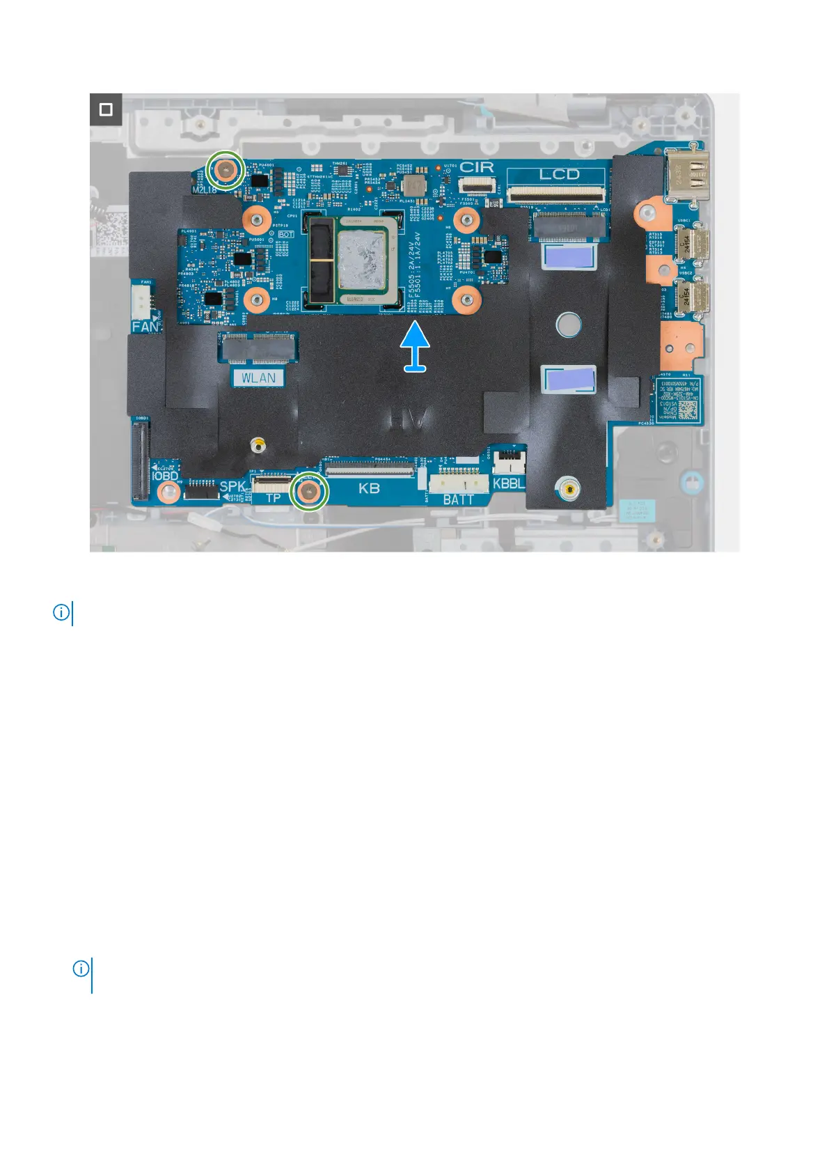 NOTE: The image shows the system board with the heat sink removed.