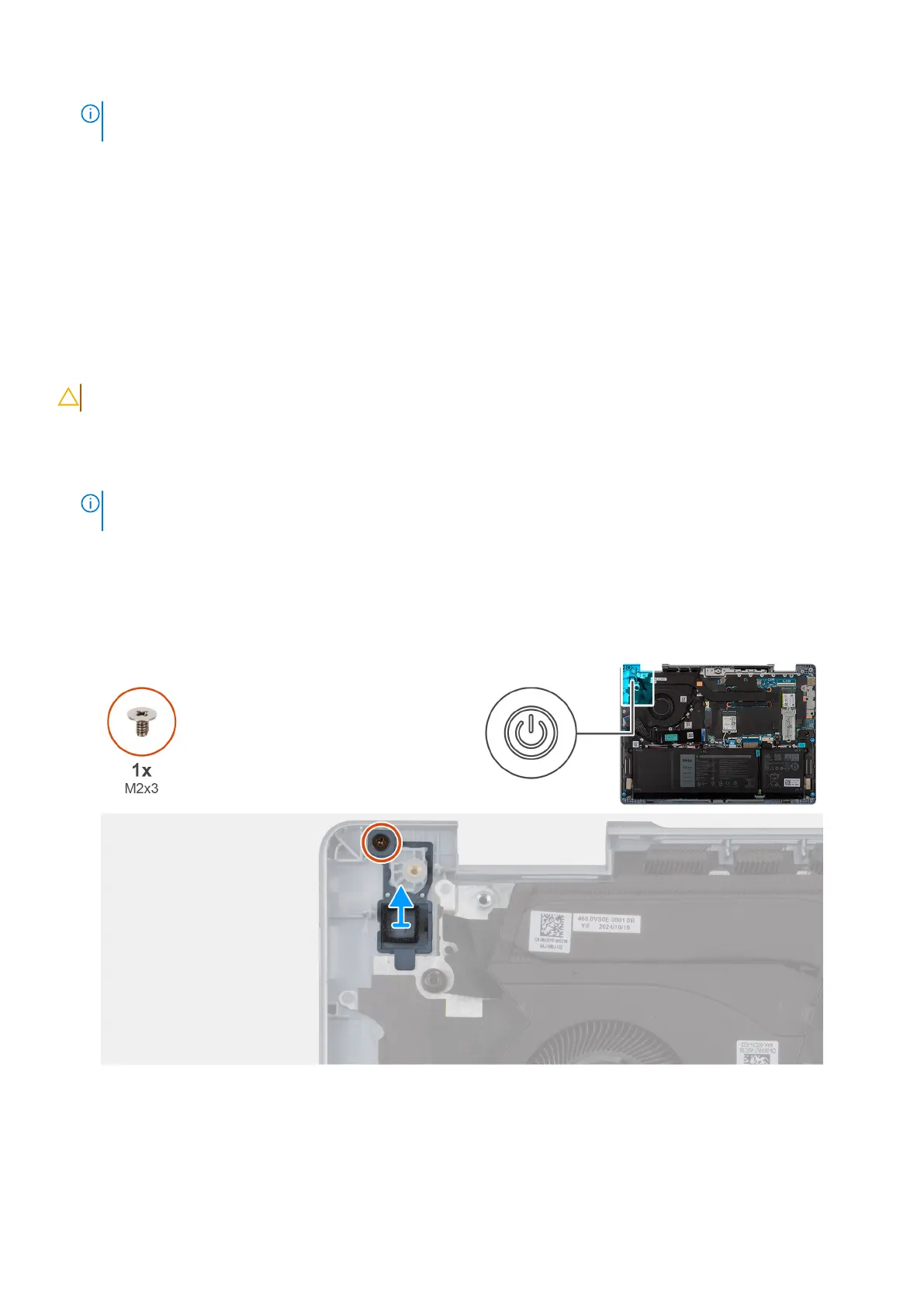 1. Remove the screw (M2x3) that secures the power button to the palm-rest and keyboard assembly.