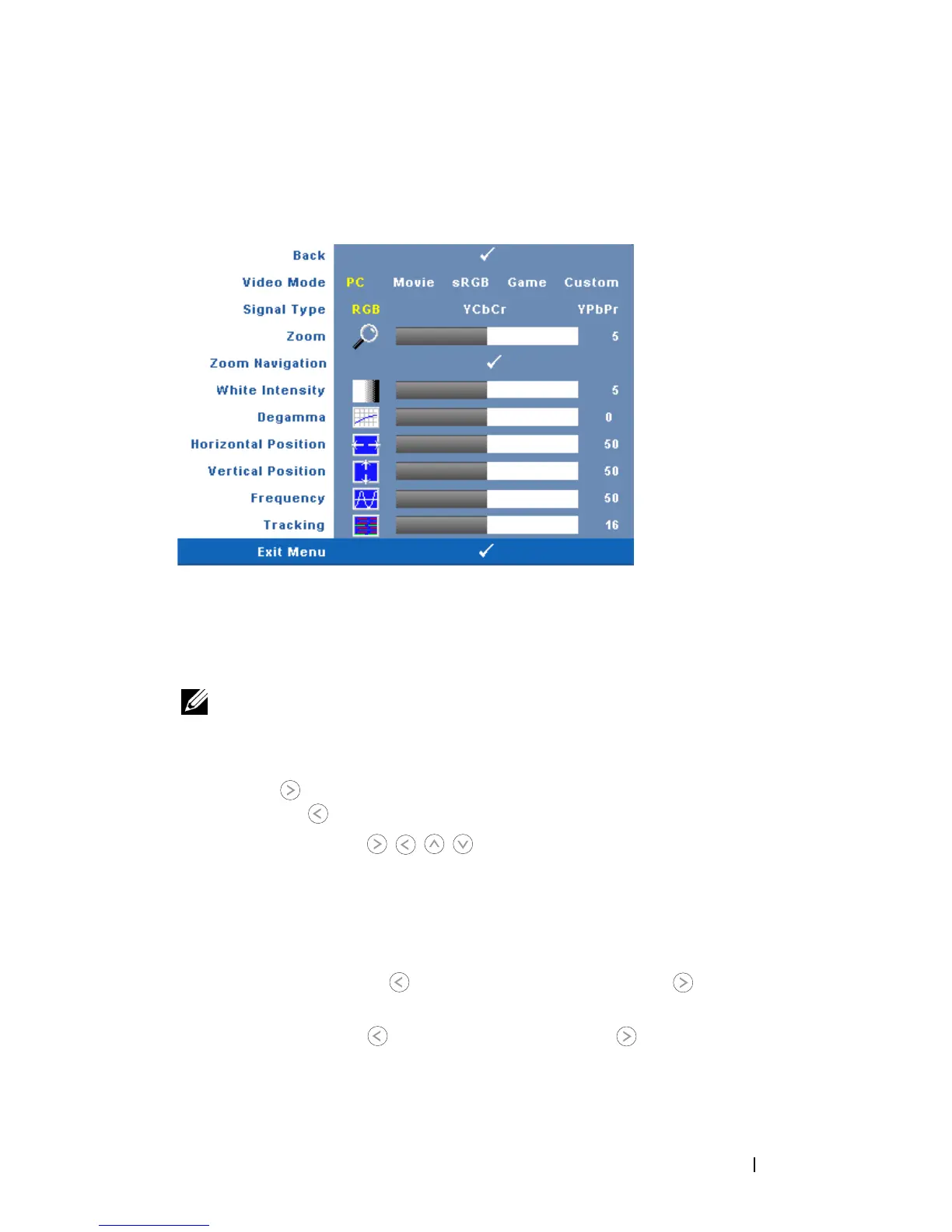 NOTE: If you adjust the settings for White Intensity or Degamma, the projector