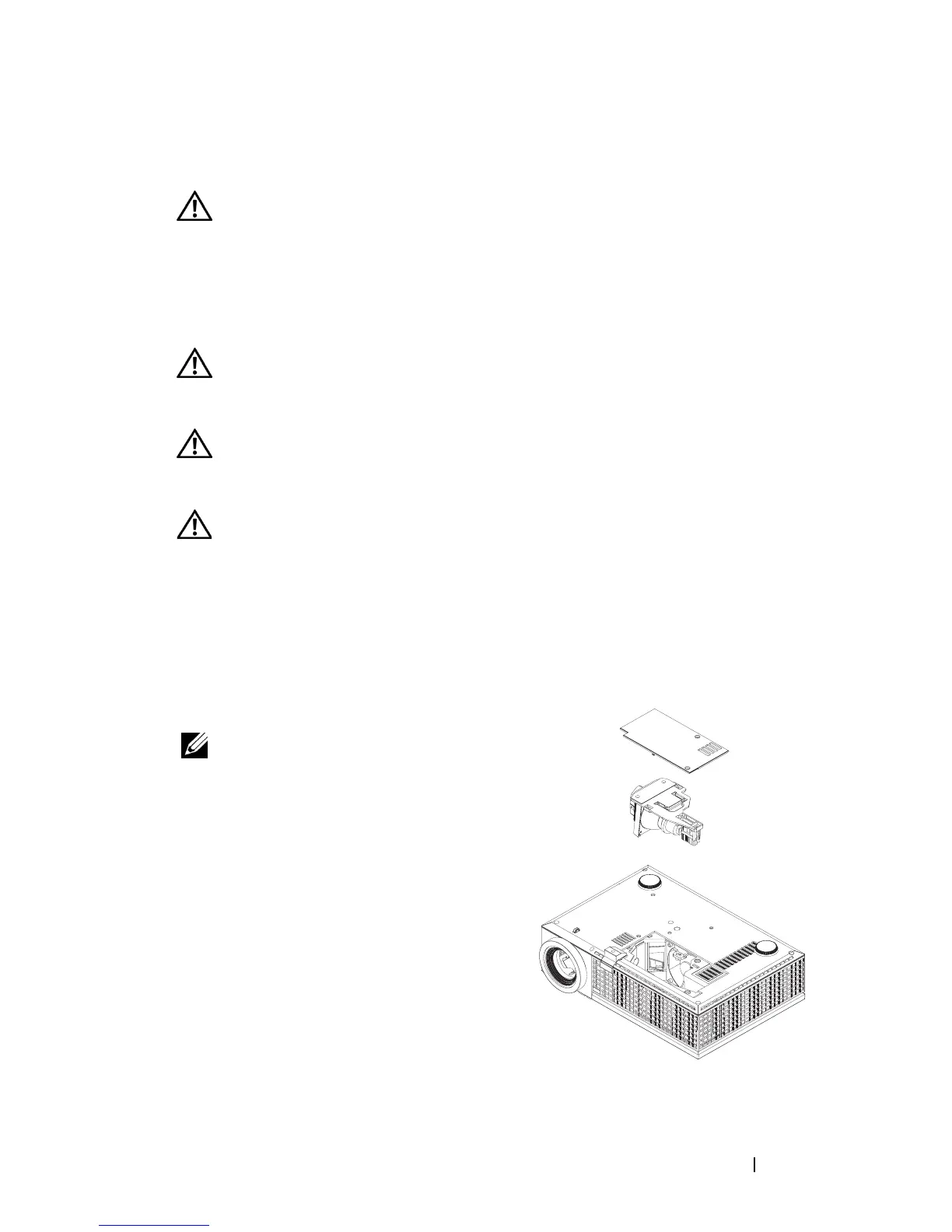 CAUTION: If the lamp shatters, remove all broken pieces from the projector