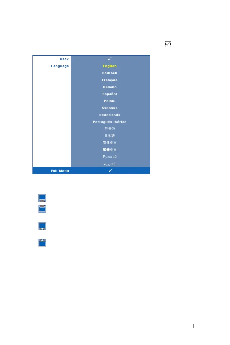button on the remote control to activate the Language menu.