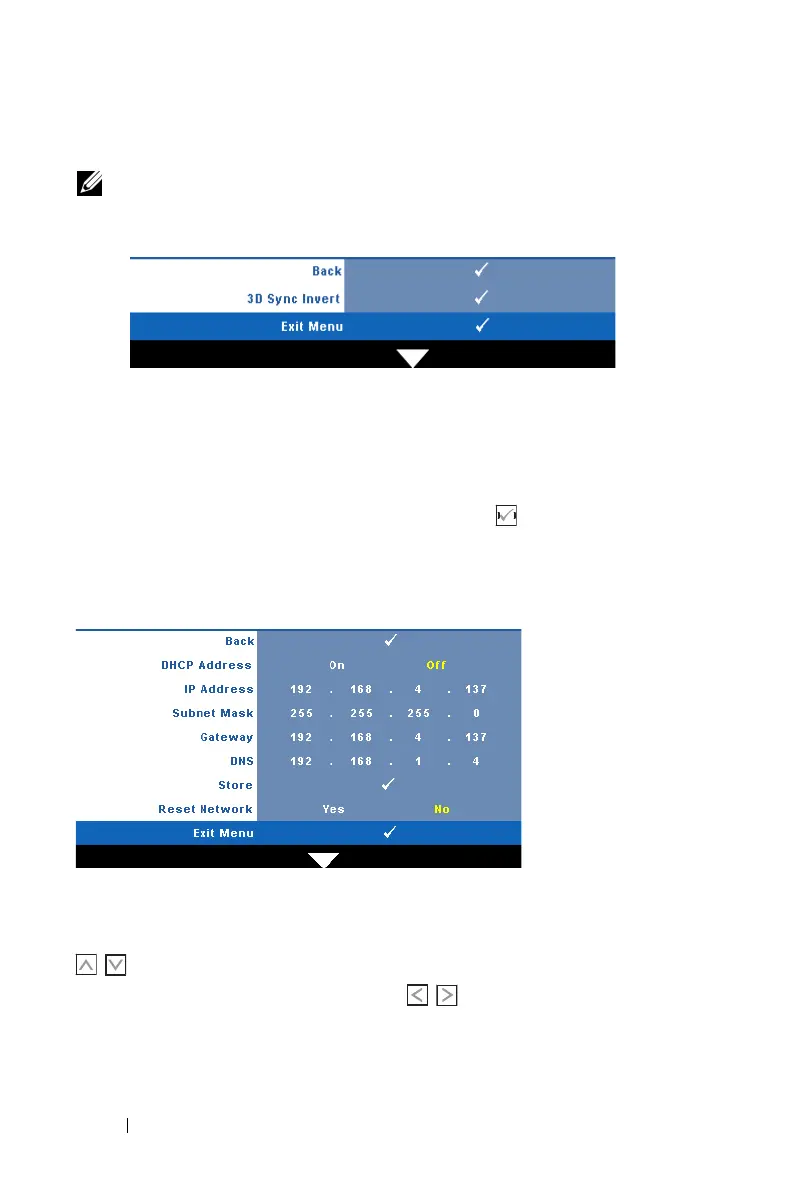 DDRESS—Automatically or manually assigns the IP address to the projector