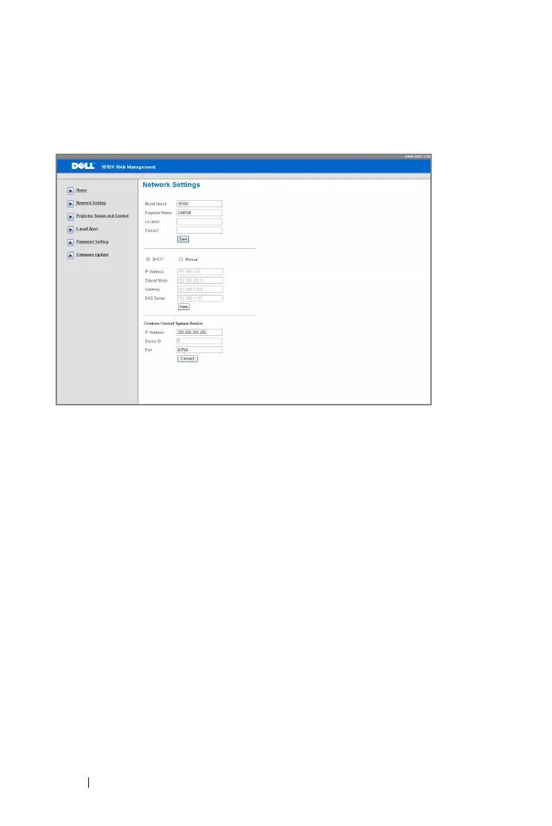 • Choose DHCP to assign an IP address to the projector from a DHCP server