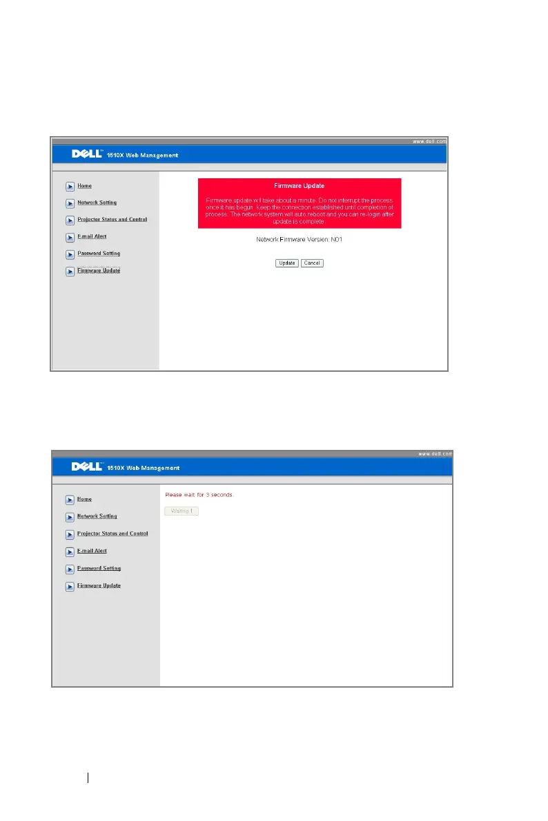 Use the Firmware Update page to update your projector’s firmware. Press Update