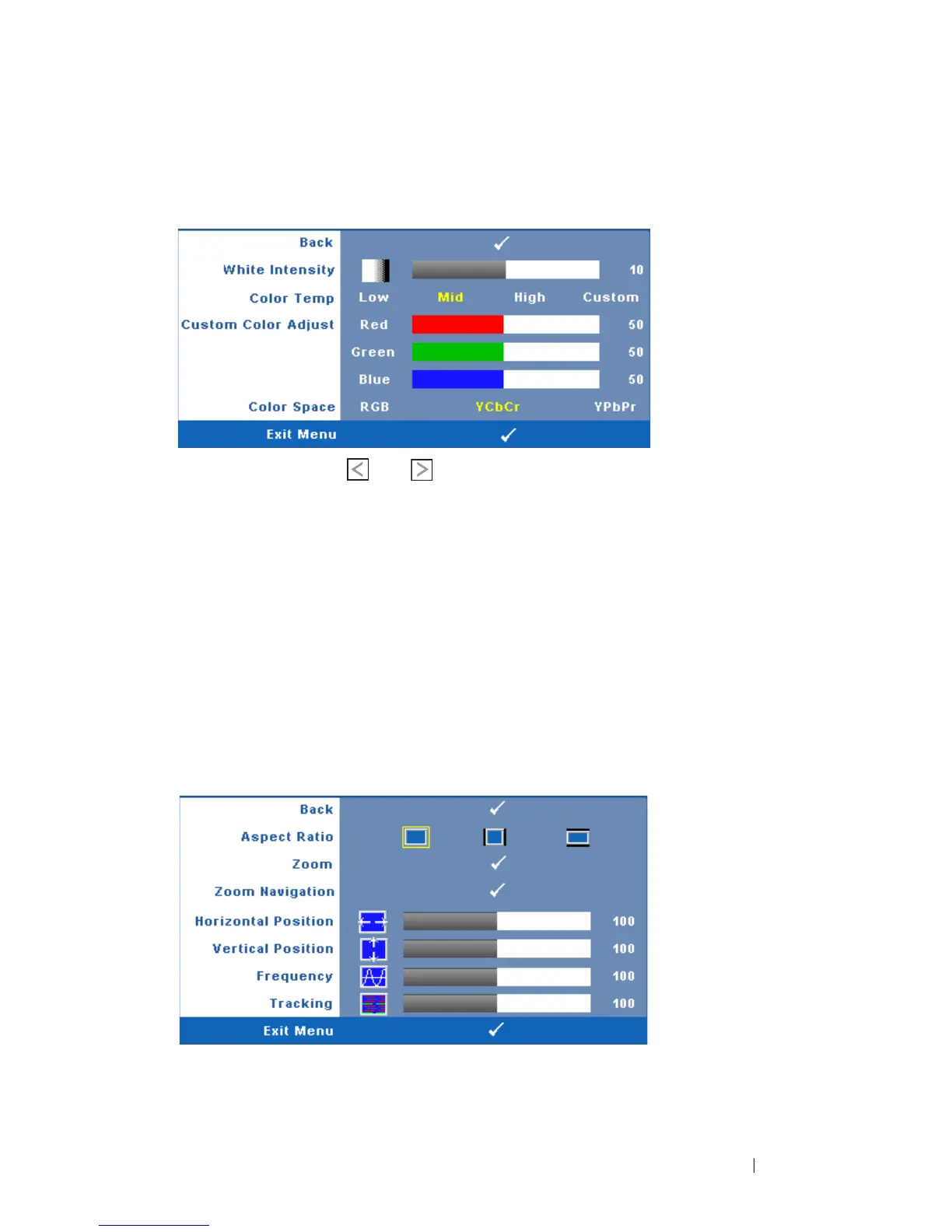 OLOR TEMP—Allows you to adjust the color temperature. The screen appears
