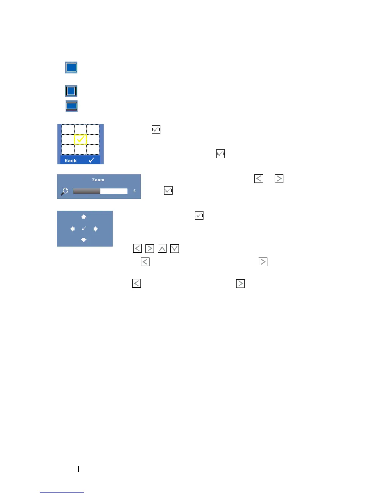 HORIZONTAL POSITION—Press to move the image to the left and to move the