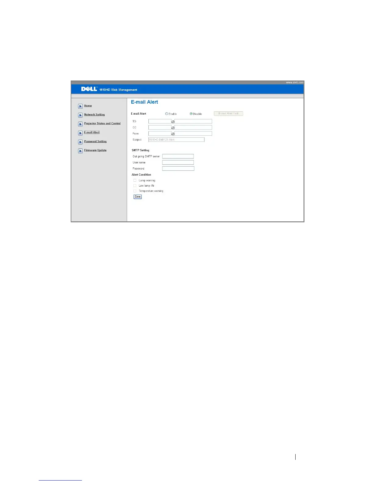 • E-mail Alert: You can set whether to be notified by email (Enable) or not