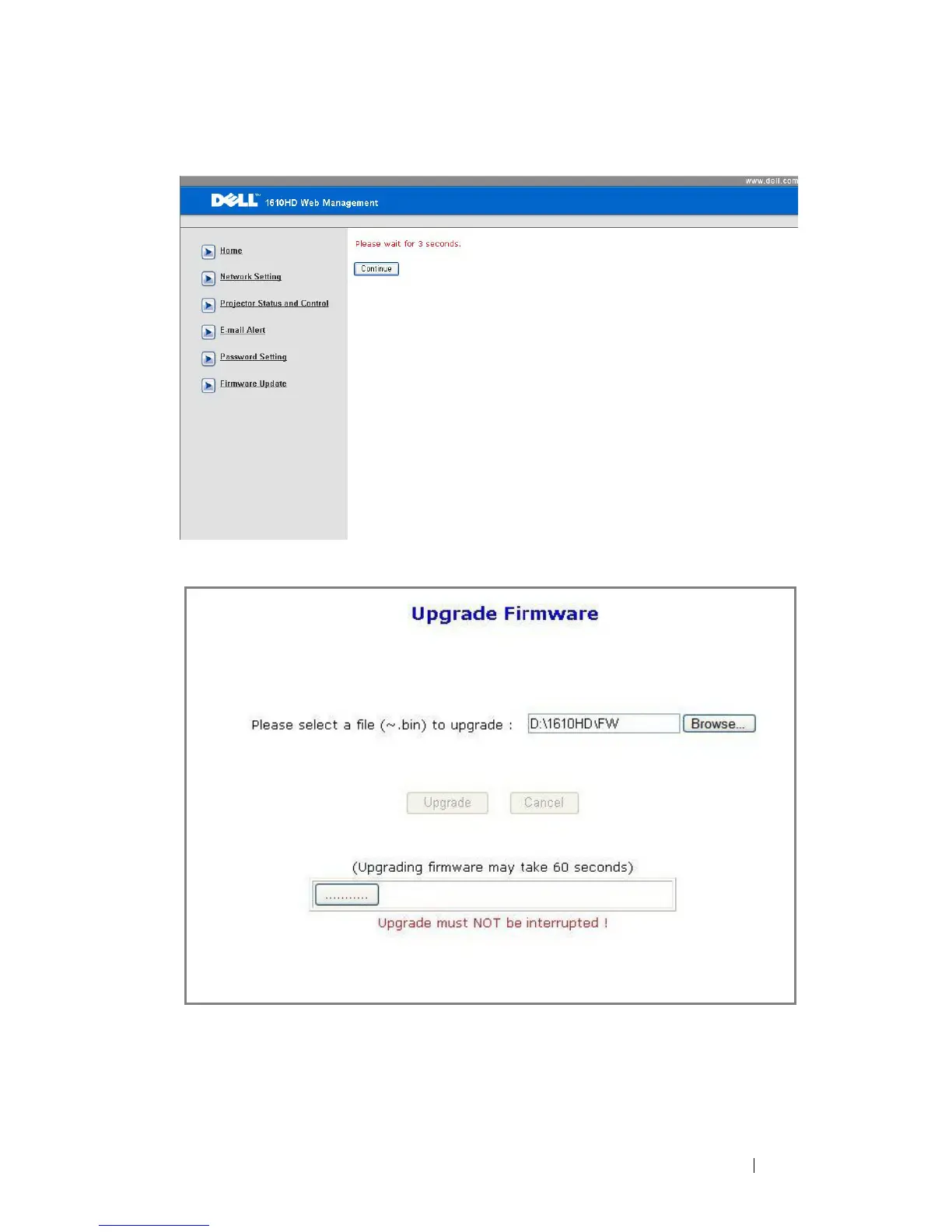 Select the file to upgrade and click the Upgrade button. When upgrading is