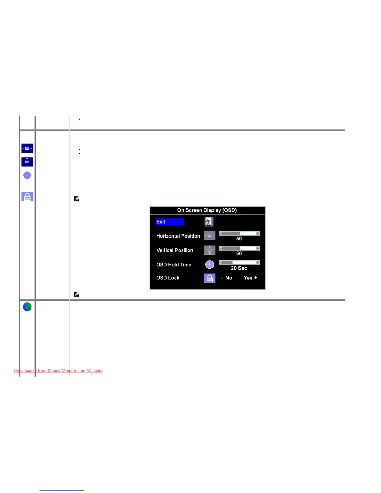 To adjust the vertical position of the OSD, use the - and + buttons move OSD down and up.
