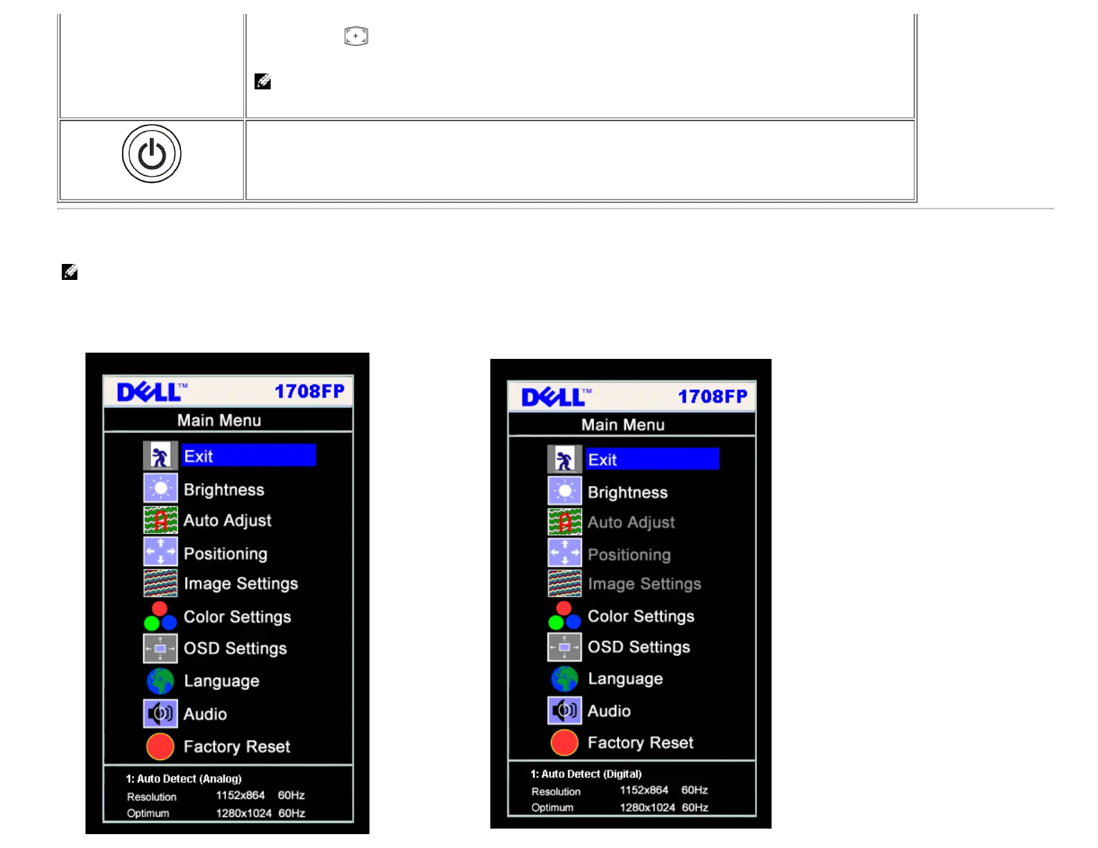 Main Menu for Auto Detect Analog (VGA) Input Main Menu for Auto Detect Digital (DVI) Input