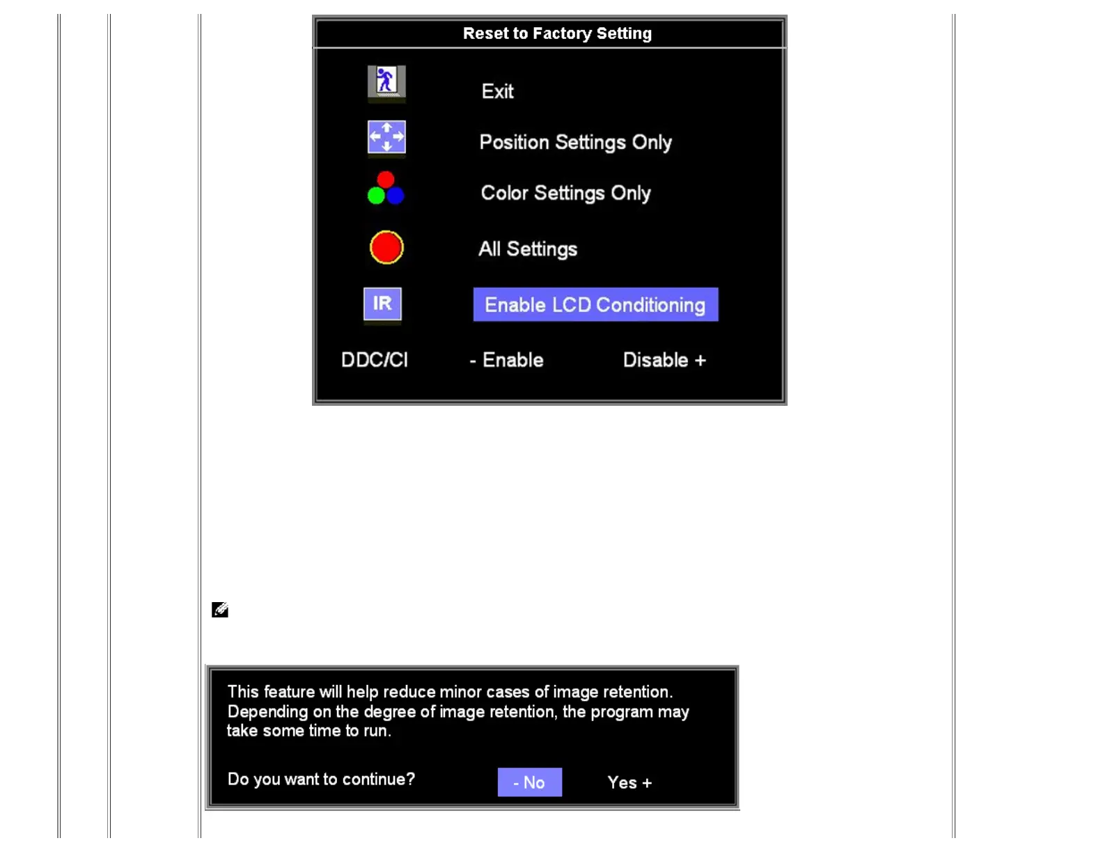 NOTE: Use LCD Conditioning only when you experience a problem with image retention.
