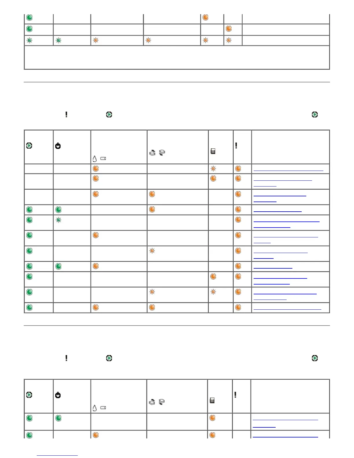twice to display secondary error code light sequences that show the exact type of paper jam. The following table shows