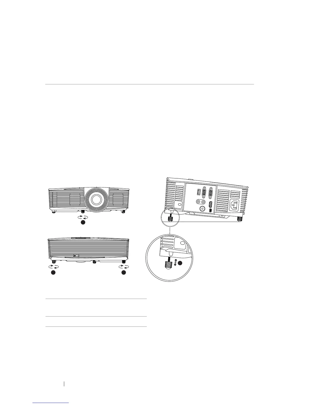 Raise the projector to the desired display angle, and use the front tilt