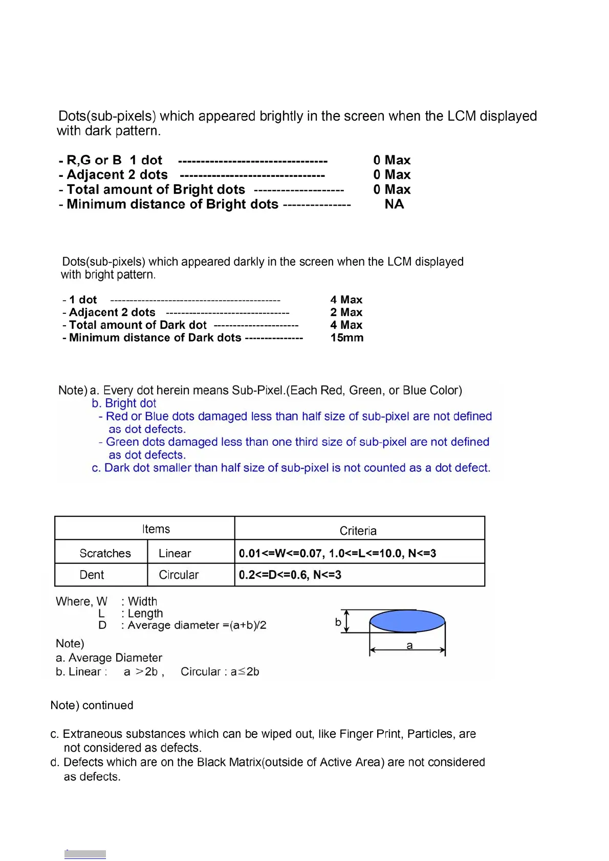 Total amount of Dot Defects -------------------------5 Max(Combination)
