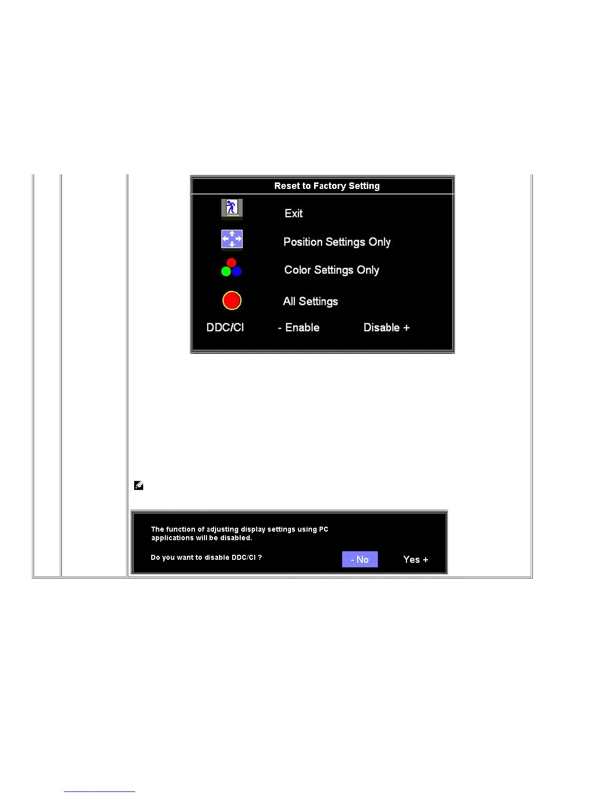 NOTE: If user select "Disable", display Warning message box as below. Select "Yes" disable DDC/CI