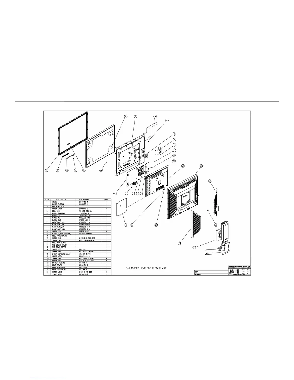 Dell 1908FPC - 12 Monitor Exploded View