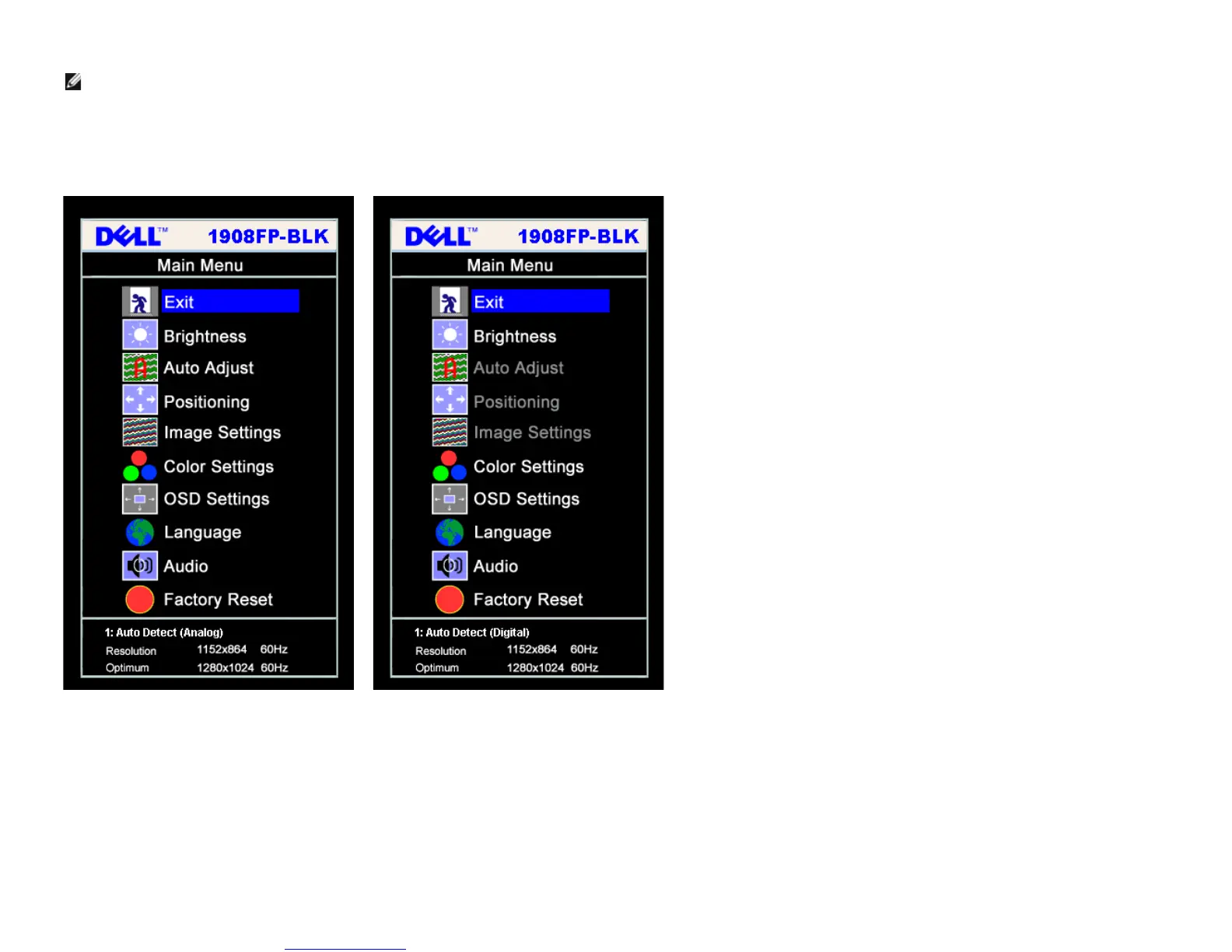 Main Menu for Analog (VGA) Input Main Menu for Digital (DVI) Input