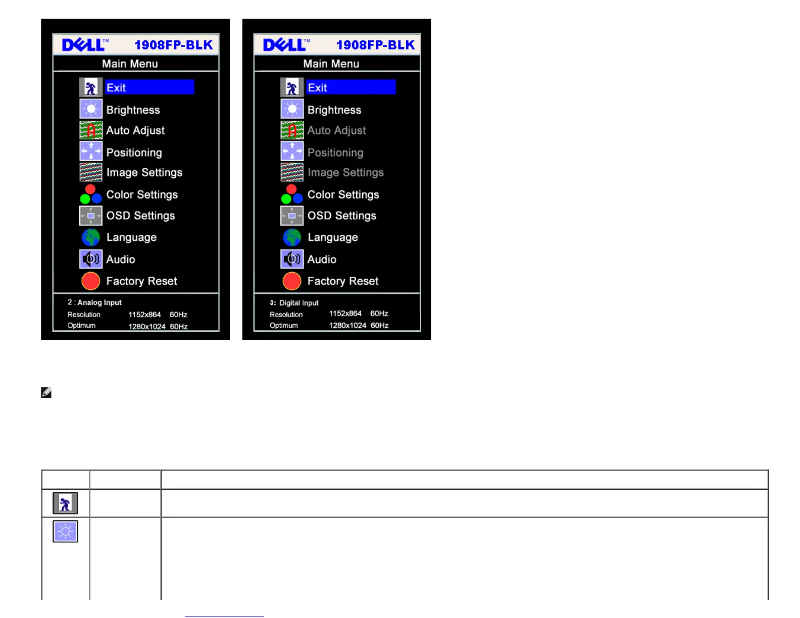 NOTE: Auto Adjust, Positioning and Image Settings are only available when you are using the analog (VGA) connector.
