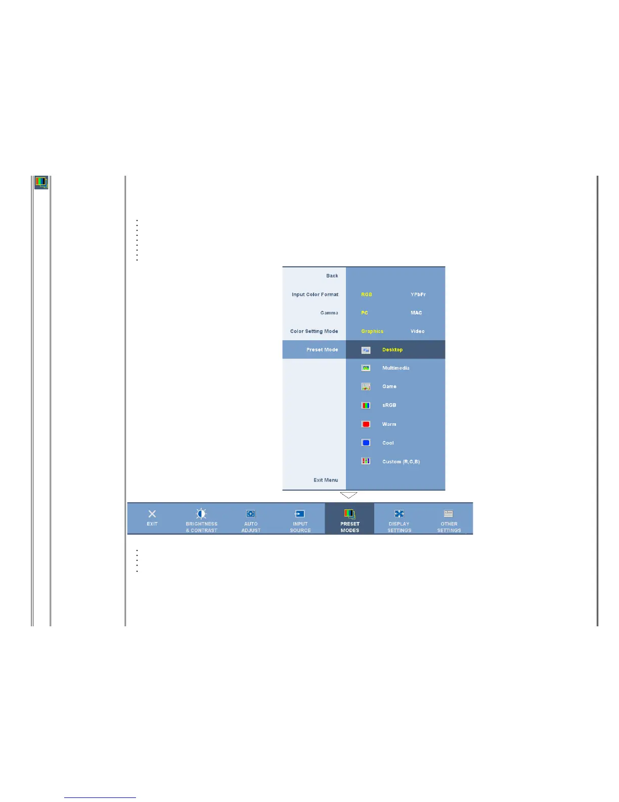 When you select Graphics, you can choose Desktop, Multimedia, Game, sRGB, Warm, Cool, or Custom preset;