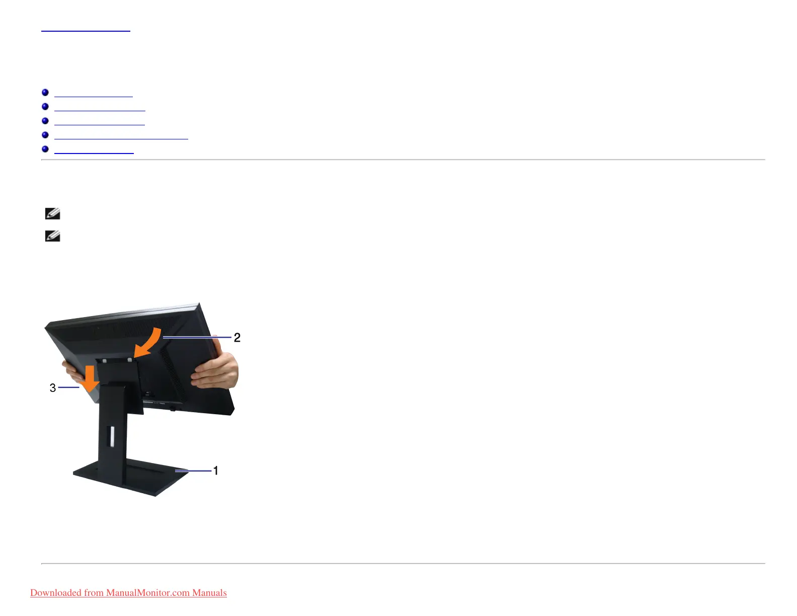 3. Lower the monitor so that the monitor mounting area snaps on to or locks on to the stand.