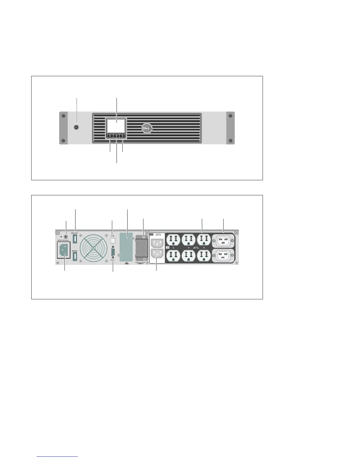 Cette section montre un panneau avant et arrièredel'onduleurBaieLine-InteractiveDell.