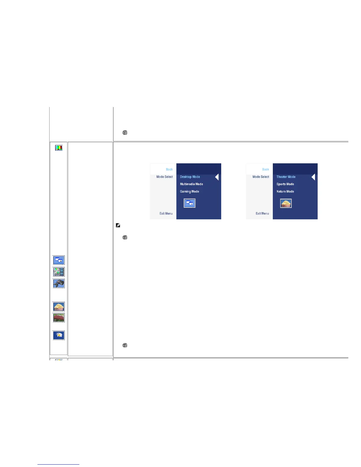 NOTE: Image modes are different between the VGA/DVI-D and Video inputs