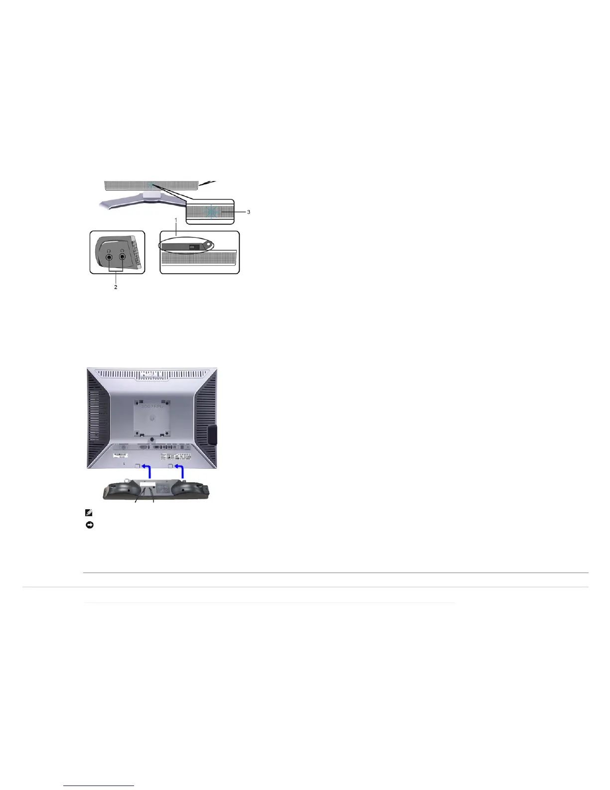 1. Working from the rear of the monitor, attach Soundbar by aligning the two slots with the two tabs along the bottom rear of the monitor.