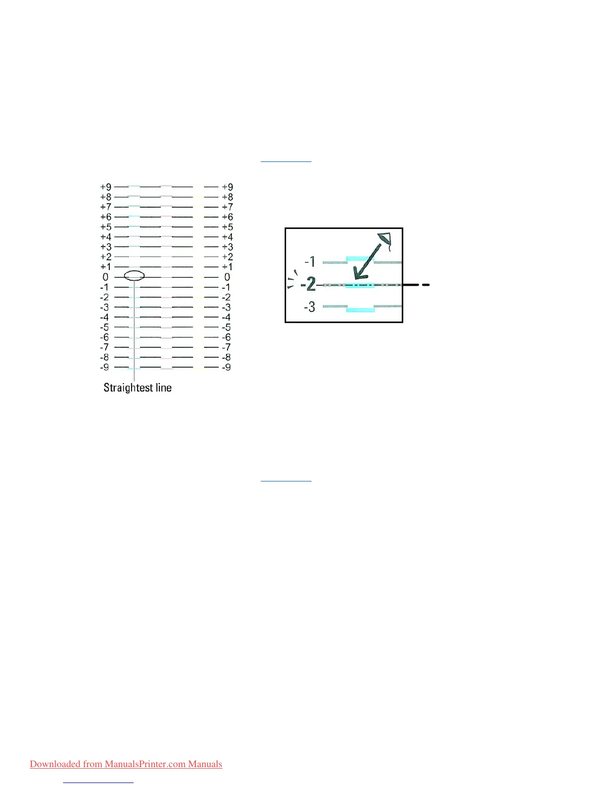 (Y, M, and C). If you find the straightest line, make a note of the value (-9 - +9) indicated by the straightest line for each color.