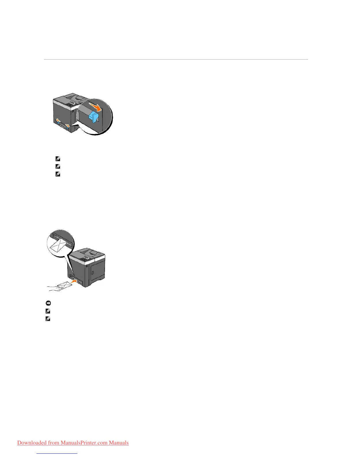 NOTICE: Never use envelopes with windows, coated linings, or self-stick adhesives. These lead to paper jams and can damage the printer.