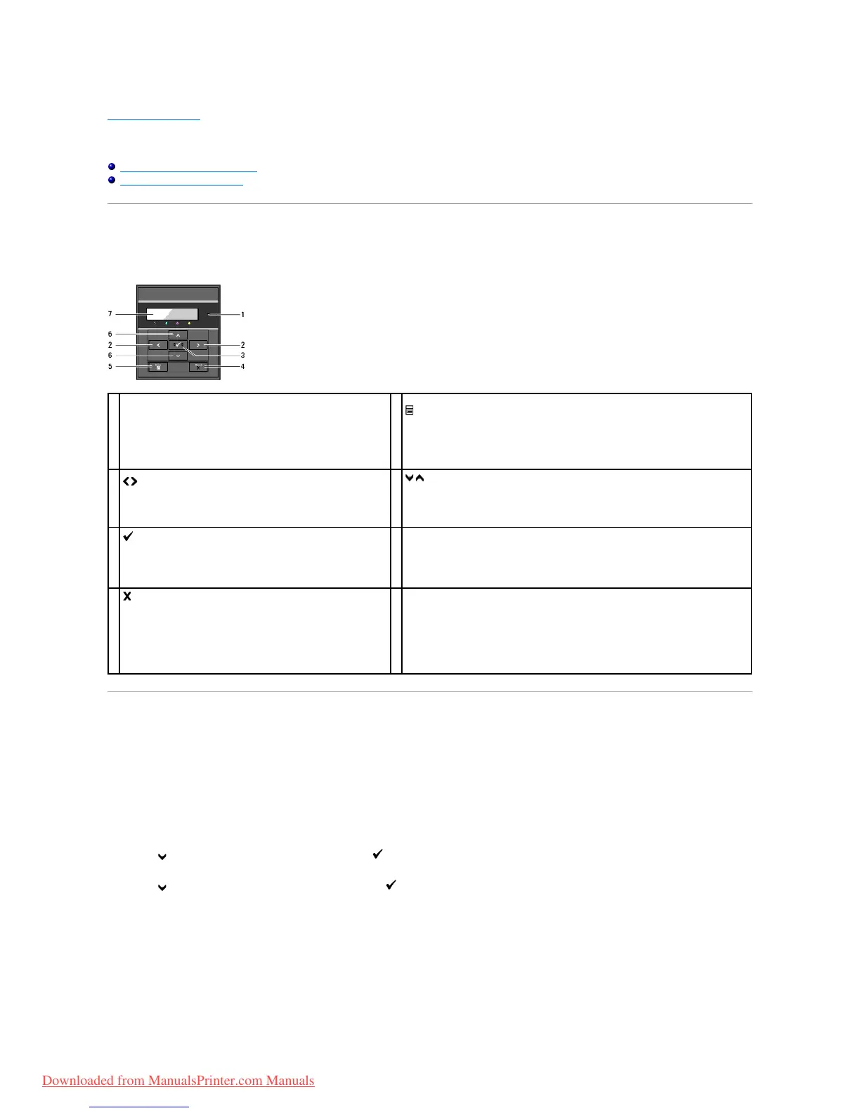 The printer operator panel has a 2-line by 16-character liquid crystal display (LCD), seven buttons, and two indicators that flash when the printer is ready to