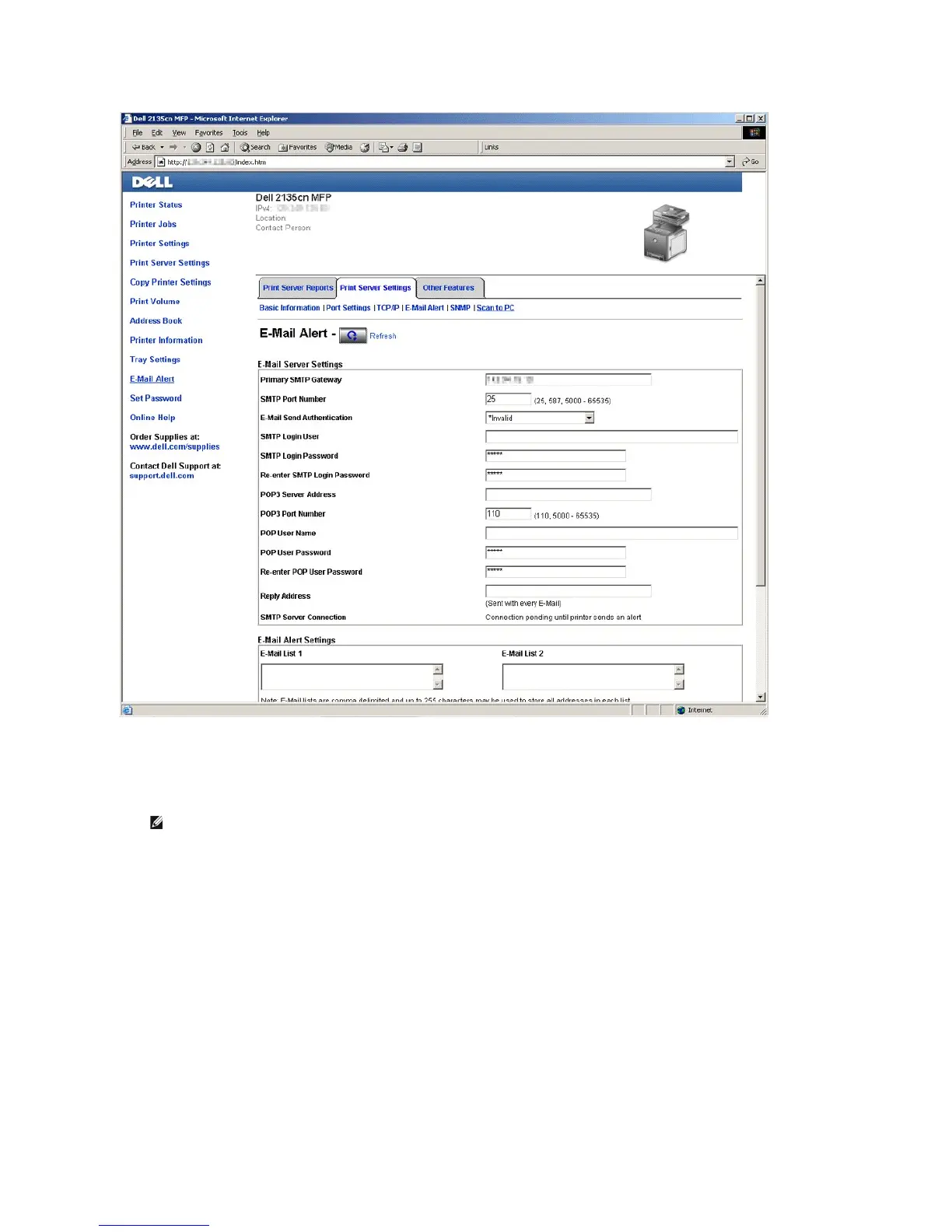 E-Mail Send Authentication: Specify Invalid to enable the e-mail server.