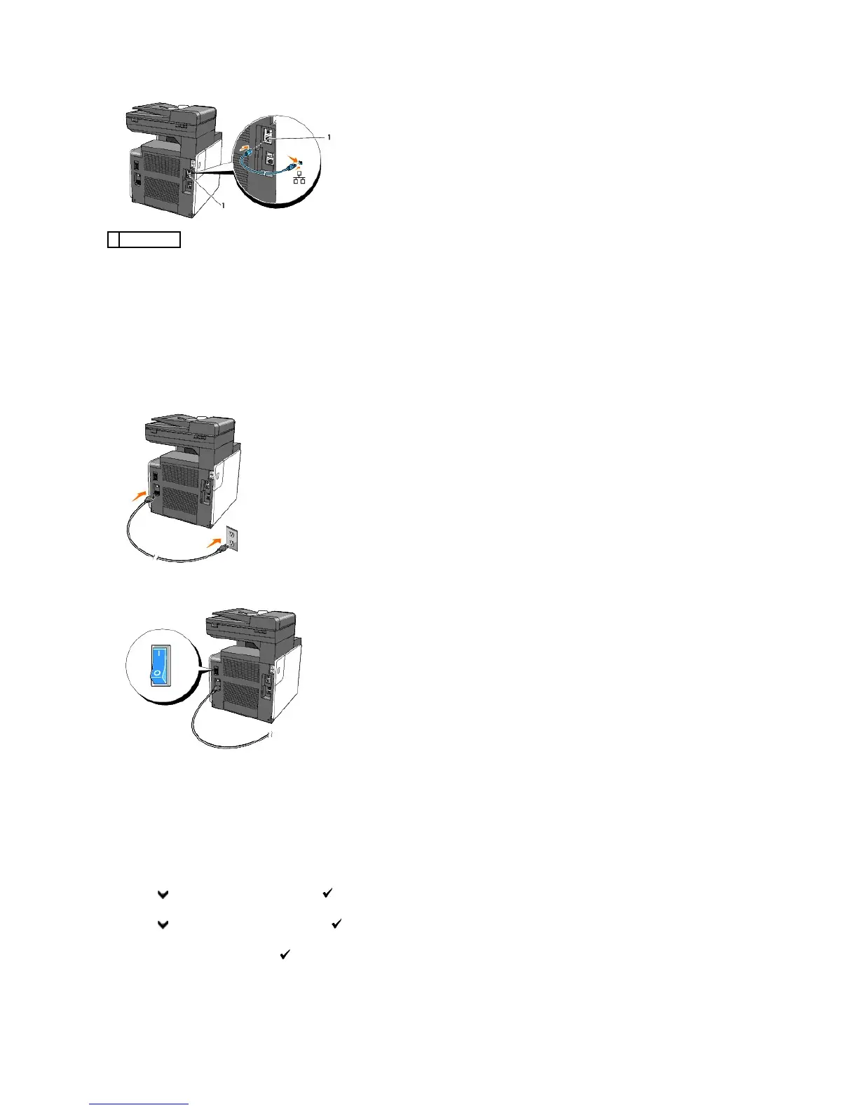 To connect the printer to the network, plug one end of an Ethernet cable into the Ethernet port at the back of the printer, and the other end into a LAN drop