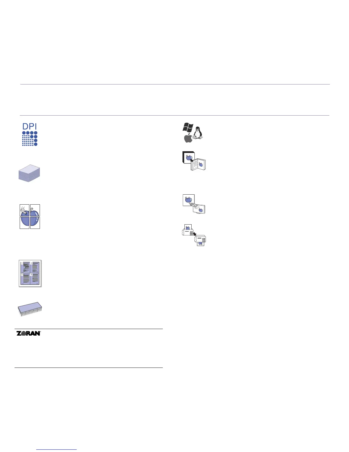 • Zoran IPS Emulation* compatible with PostScript 3 (PS)