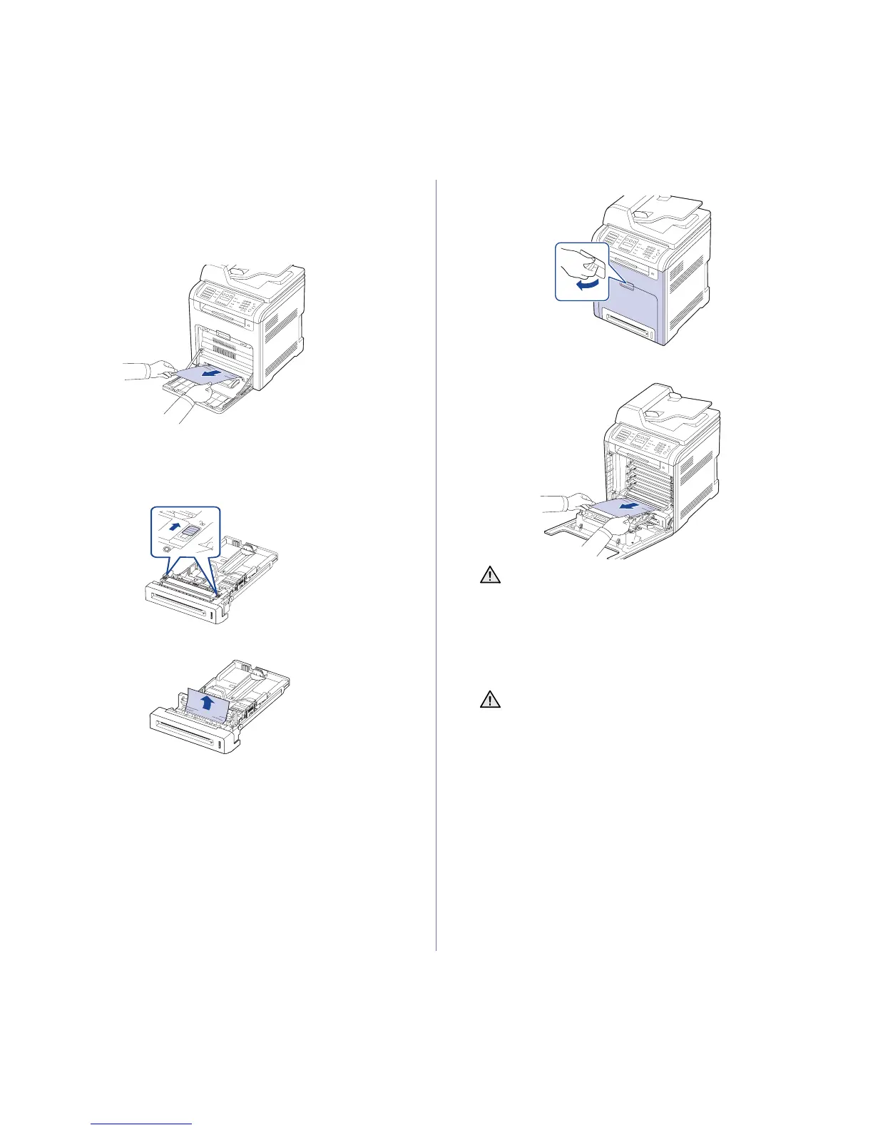 8. Remove the jammed paper by pulling in the direction shown. To avoid