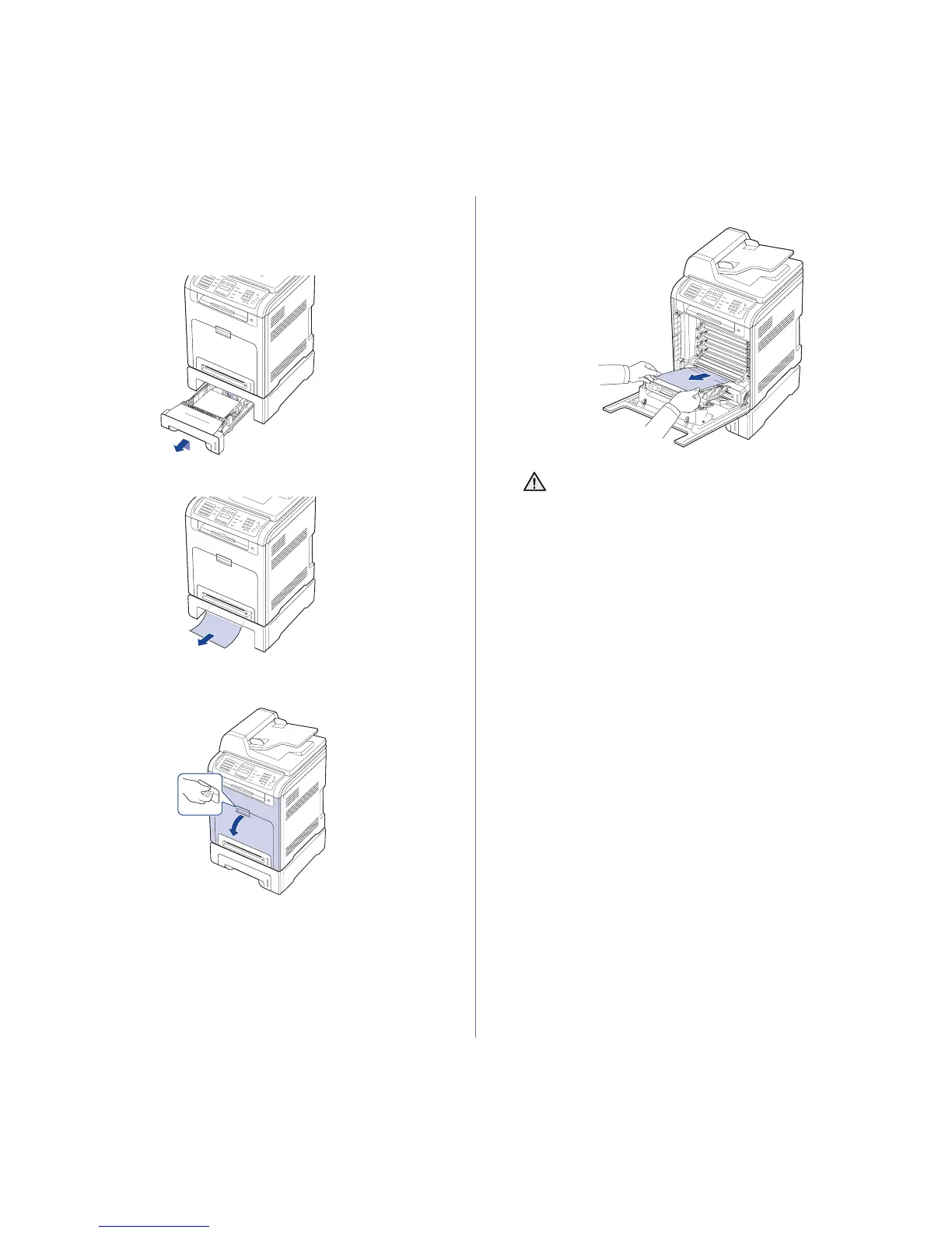 5. Pull the jammed paper out in the direction shown. To avoid tearing the