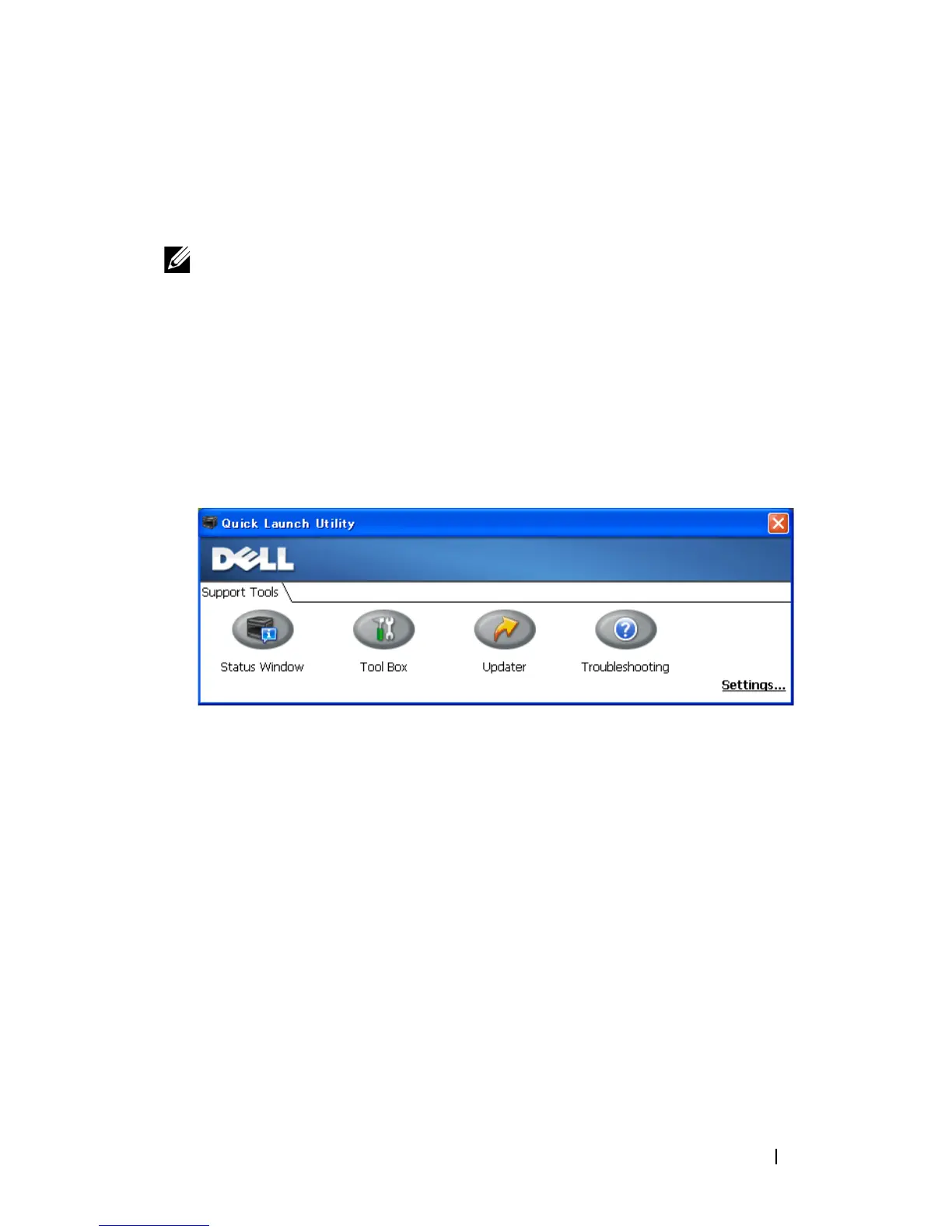The Quick Launch Utility window provides four buttons: Status Window,