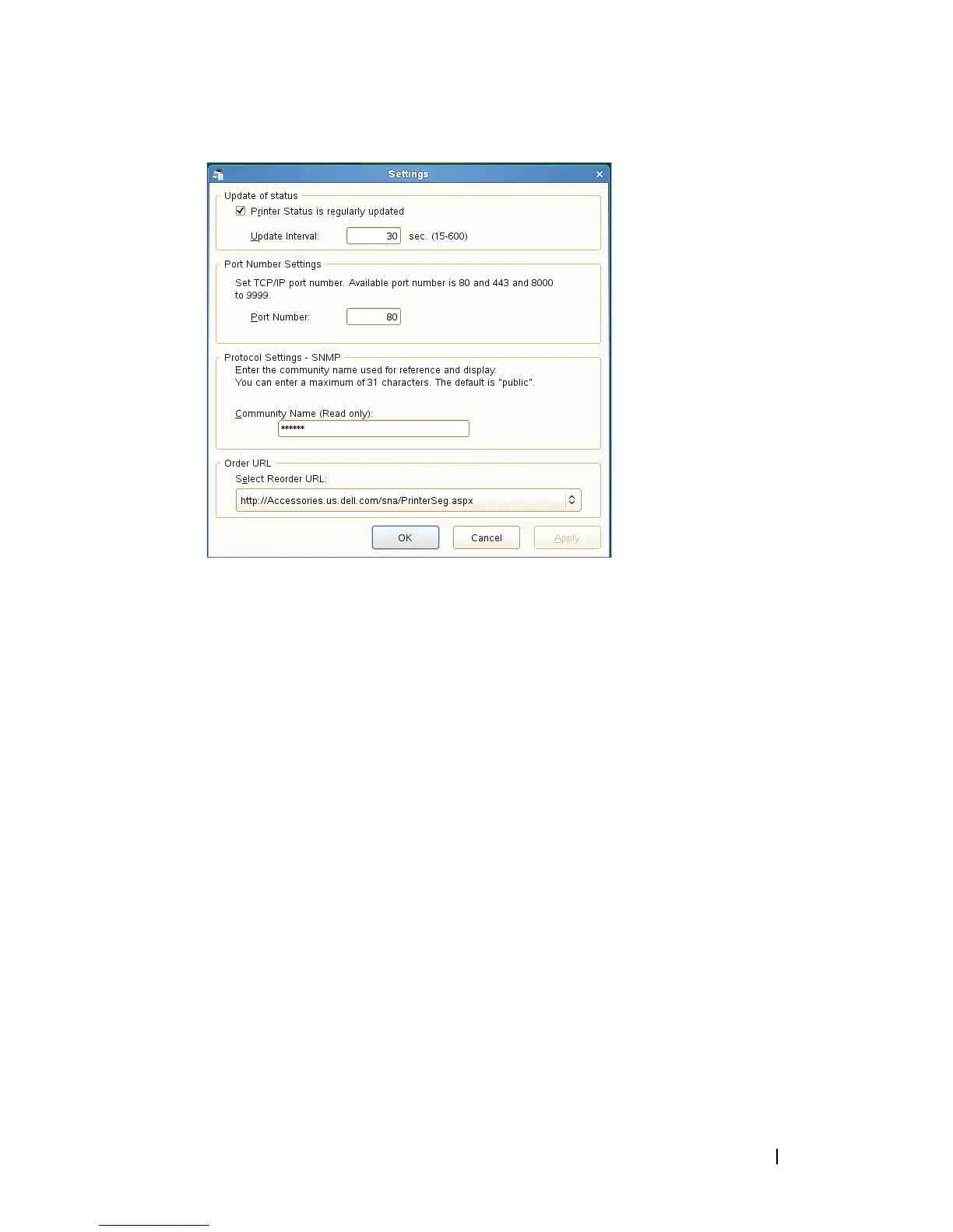 Specify the update interval of the printer status.