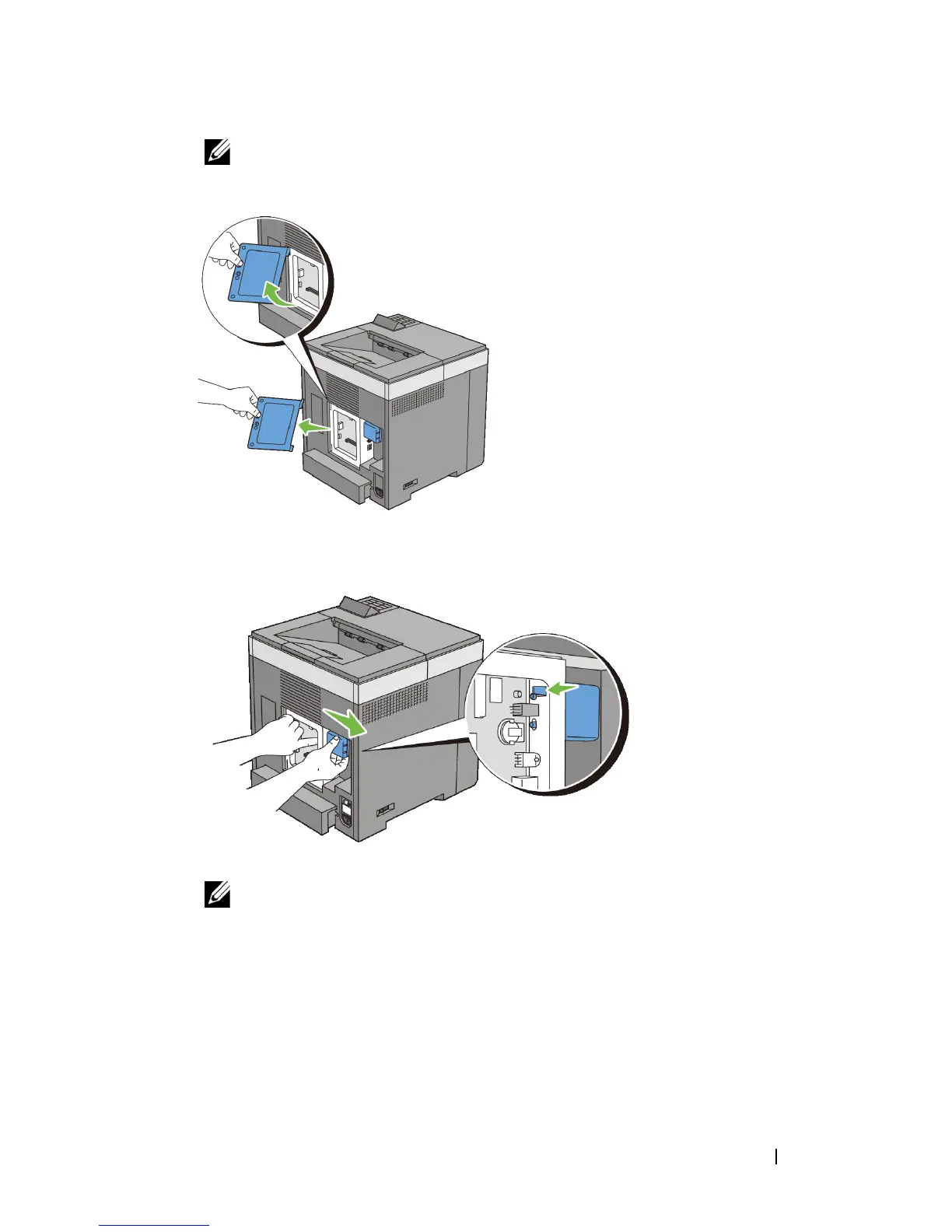 on the printer. Next, insert the lower hinge of the control board cover into the