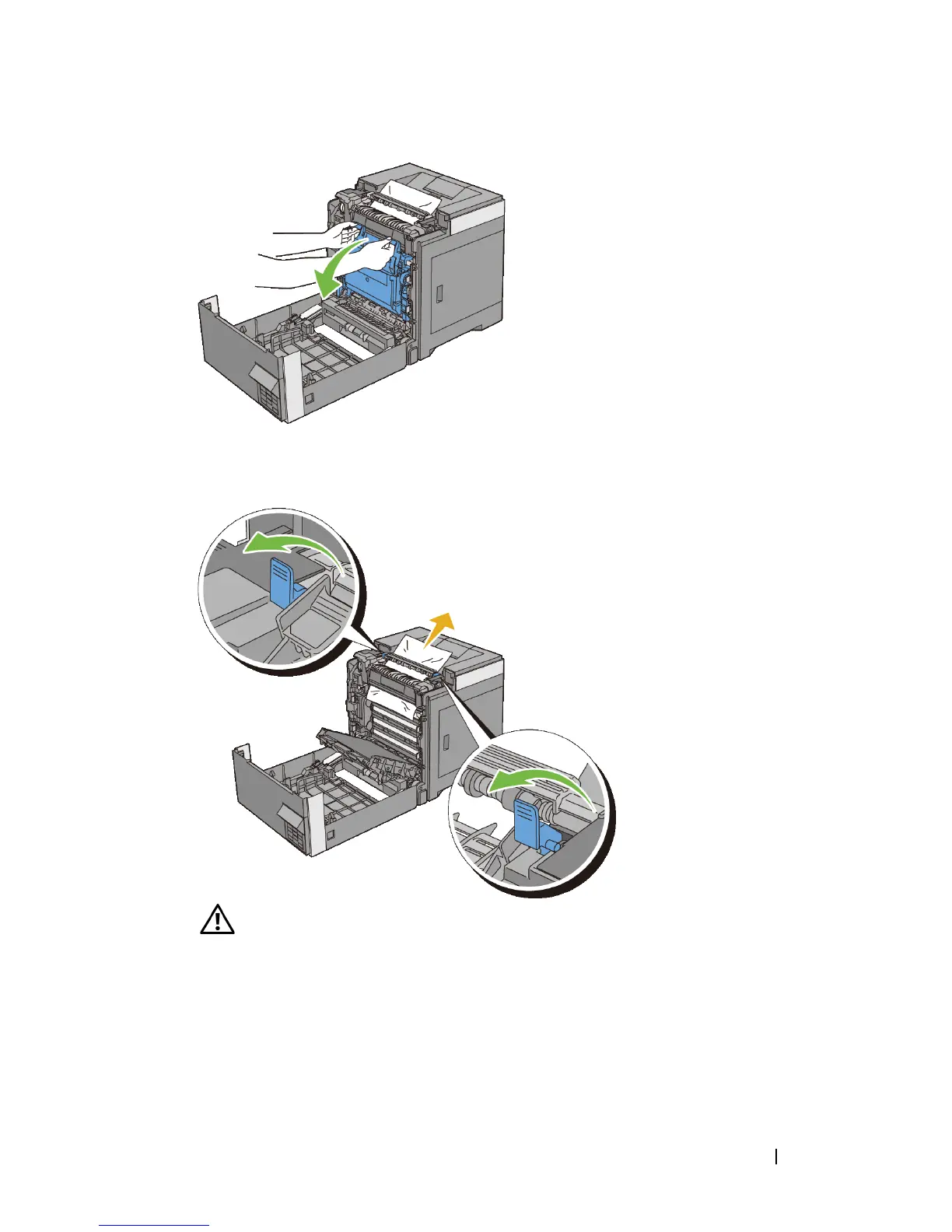 CAUTION: The fuser is hot. Do not touch it, doing so may cause burns.