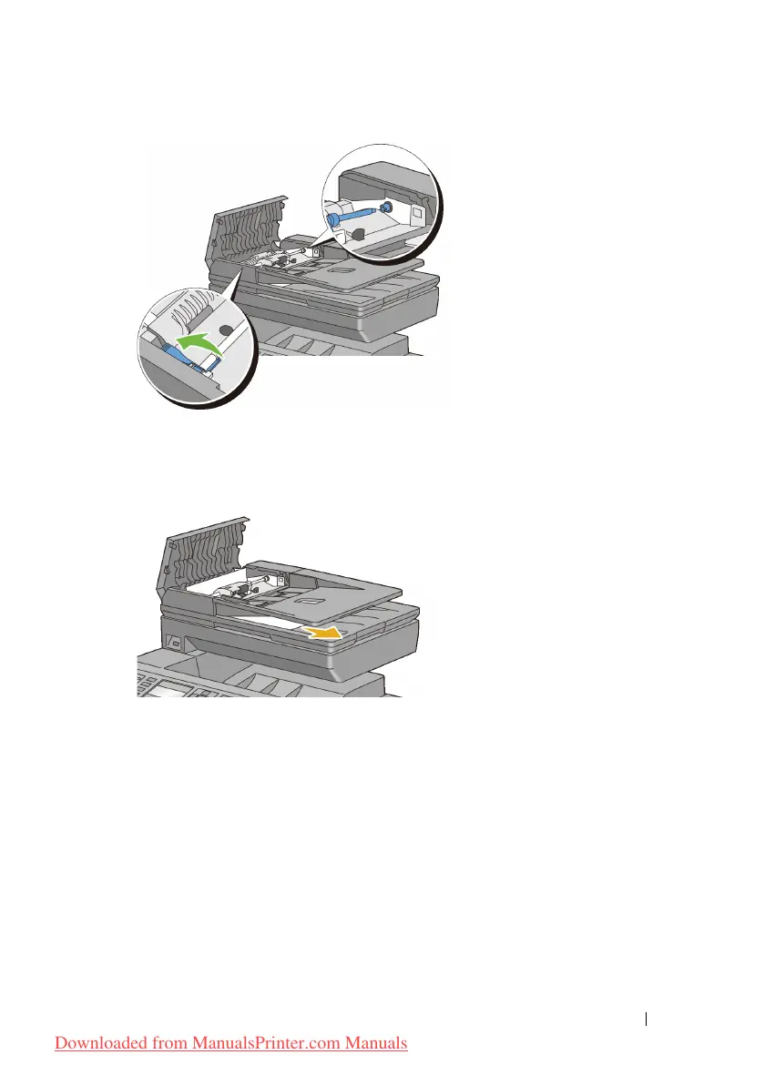 Remove the jammed document from the document output tray.