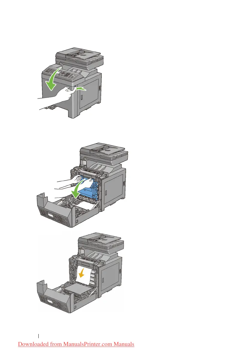 Open the belt unit until it stops and remove the jammed paper. Confirm that