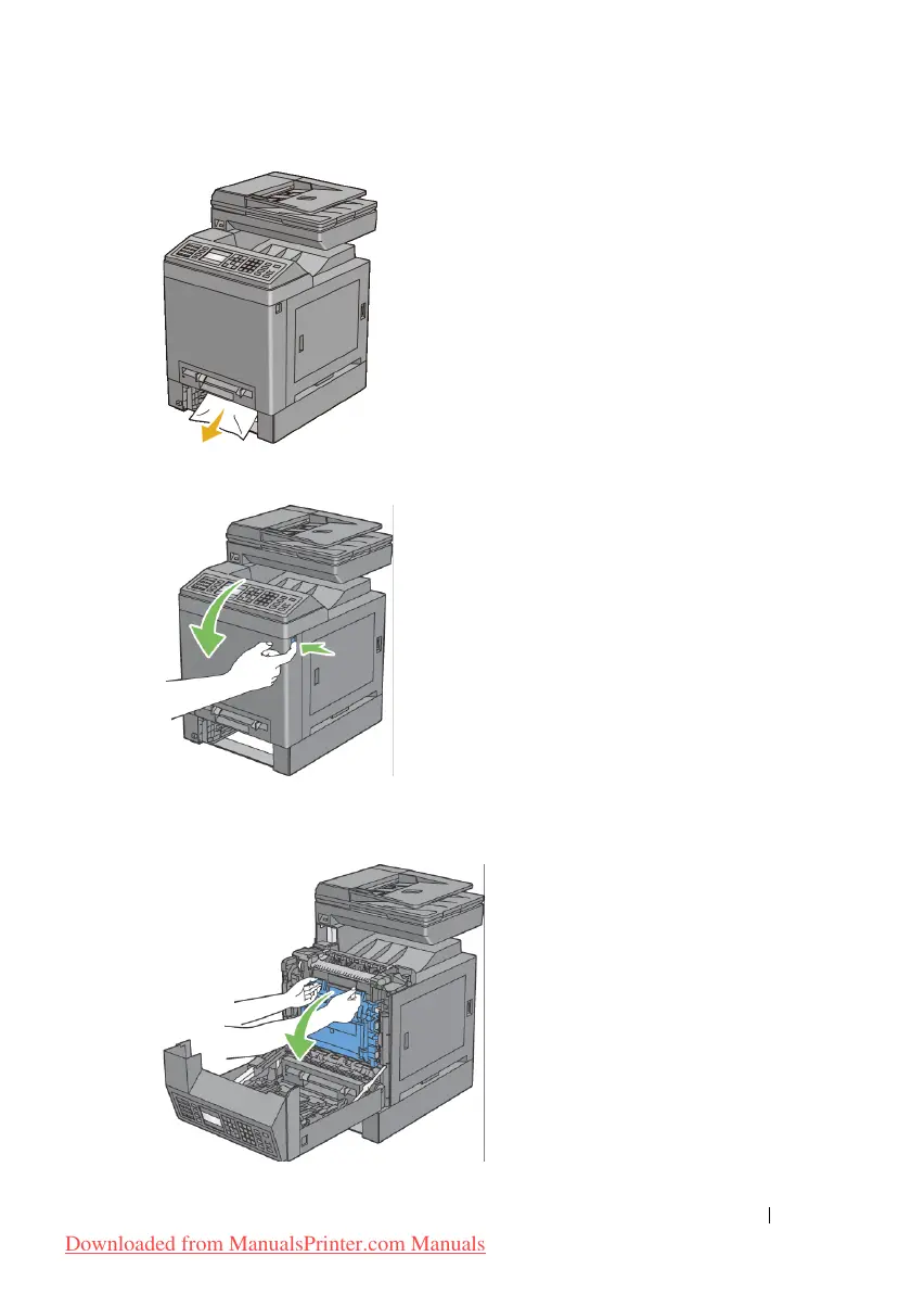Open the belt unit until it stops and remove the jammed paper. Confirm that