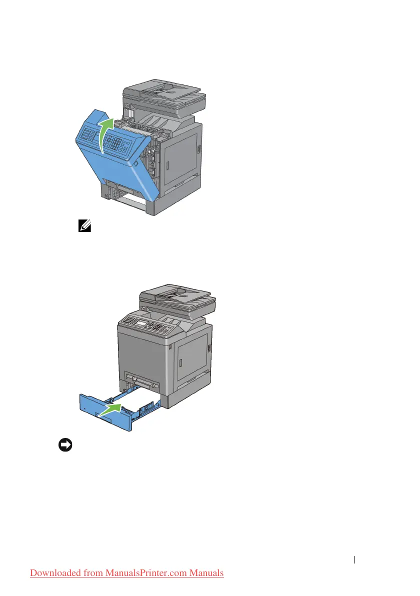 NOTE: If the paper jam message is not cleared after closing the front cover,
