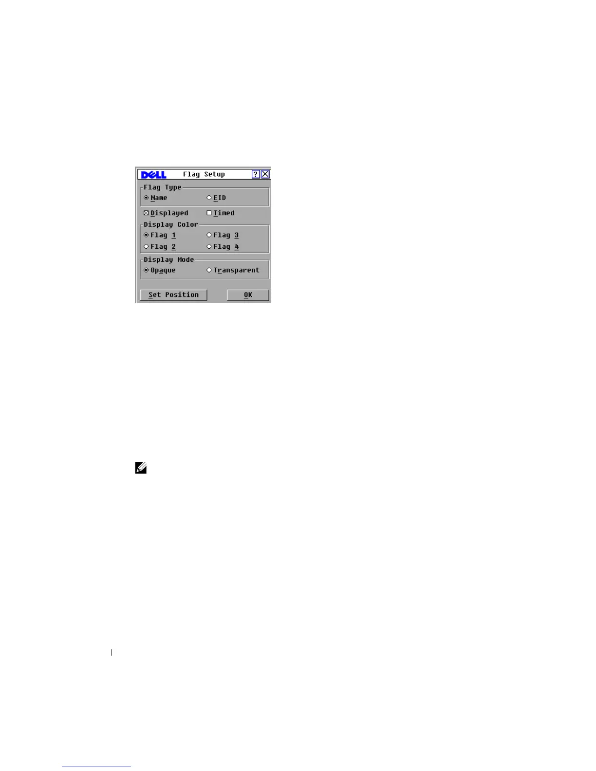 NOTE: Changes made to the flag position are not saved until you click OK in the Flag dialog box.