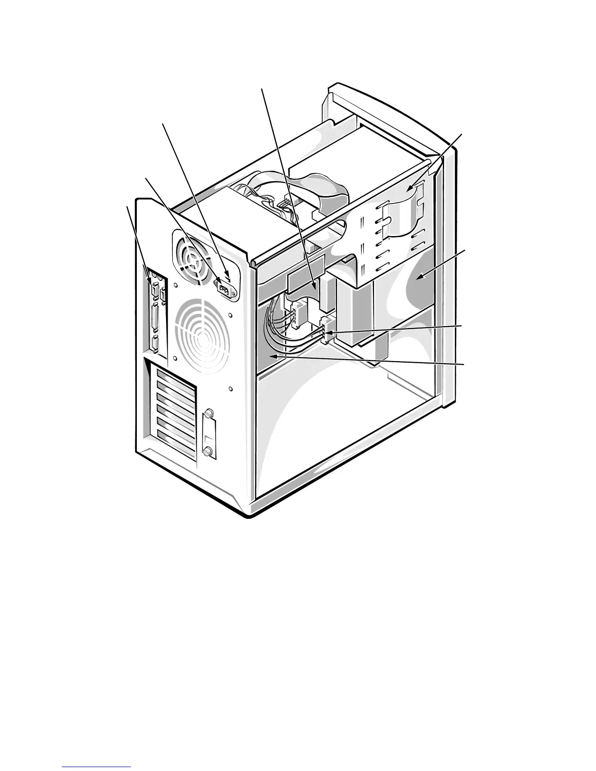 Dell 2200 - Figure 6-4. Inside the Chassis-Back;Left Side View
